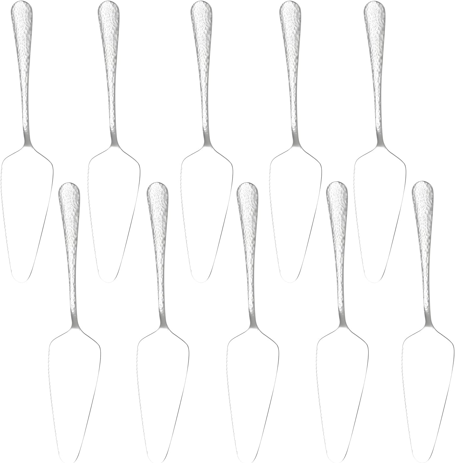 Stainless Steel Cake Server Pack of 10 Hammered Pie Holder Transfer Triangular Spade Spatula Serrated Edge for Pizza Cake Baking Safe in Dishwasher (Silver)