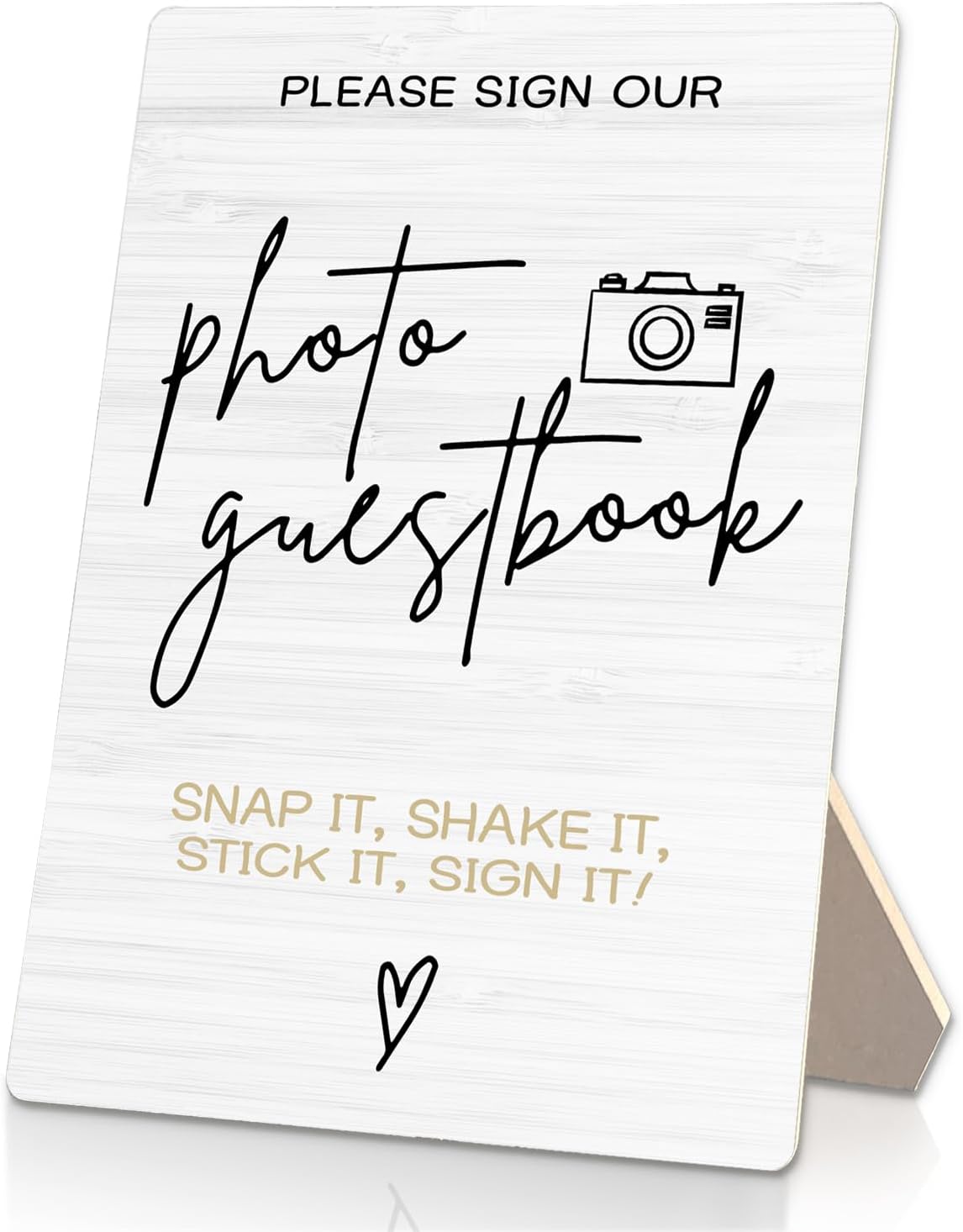 Photo Guest Book Wooden Stand 5x7inch, Wedding Reception Desk Decor for Guests to Sign