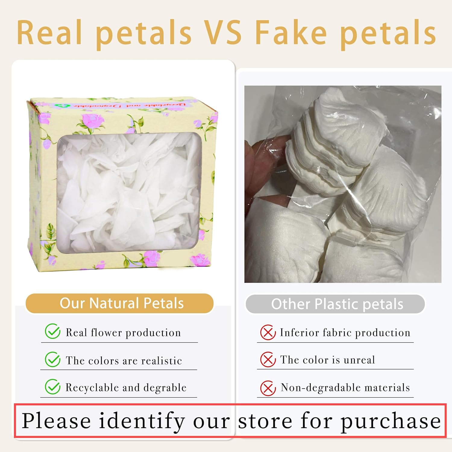 • Elegant Ivory: The petals are about 1.5*1.5 inches in diameter and weigh about 1.58 oz, with approximately 160 pieces. The natural petals come in various sizes and shapes. Like many white flowers, white roses symbolize peace, innocence, purity, loyalty, and eternity, making them perfect for proposals, anniversaries, or romantic nights