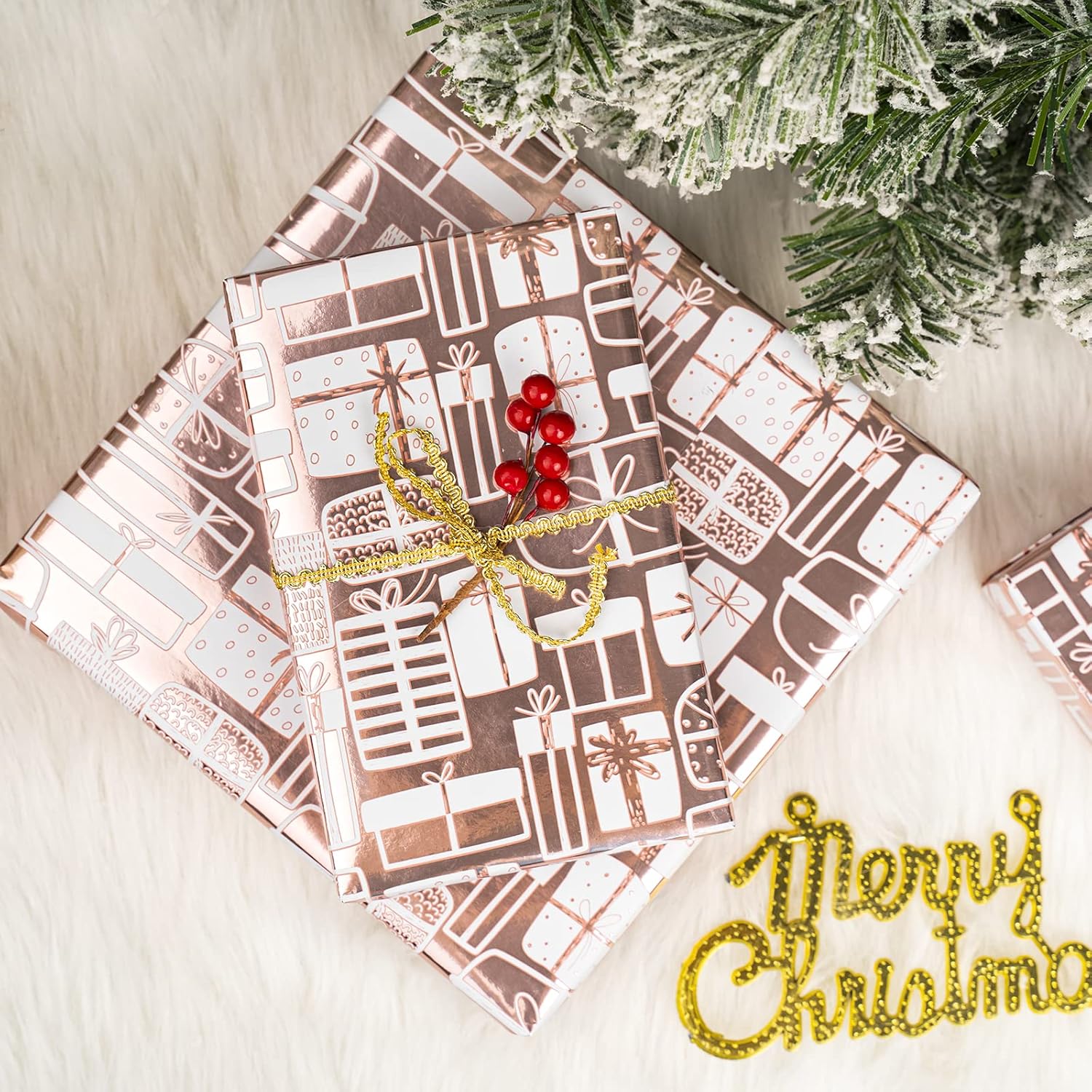 • METALLIC SHINE: Rose gold present design with metallic shine make sure every gift you give has an elegant touch by creating gift wrapping in this wonderful wrapping paper.
