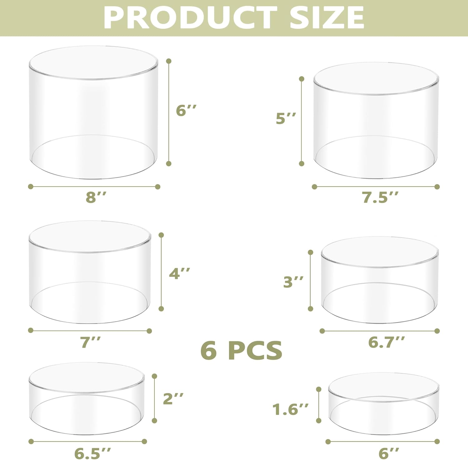 6Pcs Buffet Risers, Food Risers for Buffet, Acrylic Boxes for Display Round Riser Display Cases Acrylic Round Display Base, Clear(Size 6",6.5",6.7",7",7.5",8")