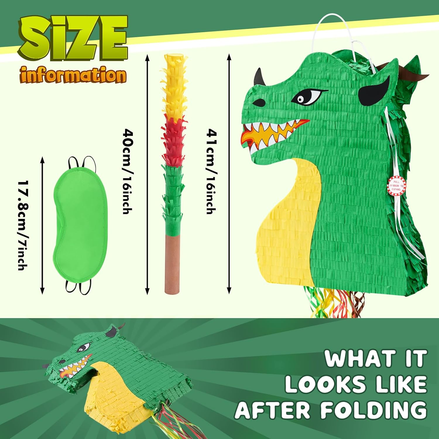• FOLDABLE DRAGON PIÑATA - Unleash the thrill of your celebration with our Foldable Dragon Piñata. Featuring a detailed dragon design with vibrant colors, this piñata adds a mystical touch to any event.