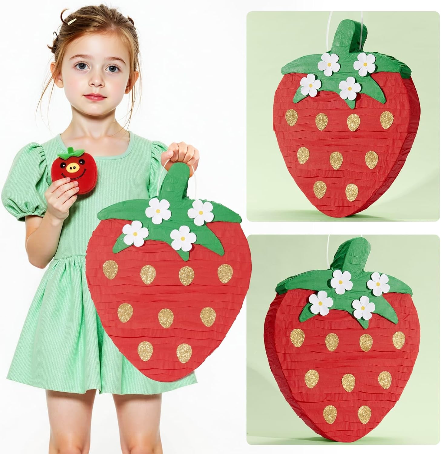• STRAWBERRY PIÑATA - Sweet summer smashes! This juicy strawberry piñata bursts with vibrant red brilliance & sugary fun! Whack it open for a shower of treats—like summer’s sweetest surprise! Perfect for pool parties & berry cute celebrations!