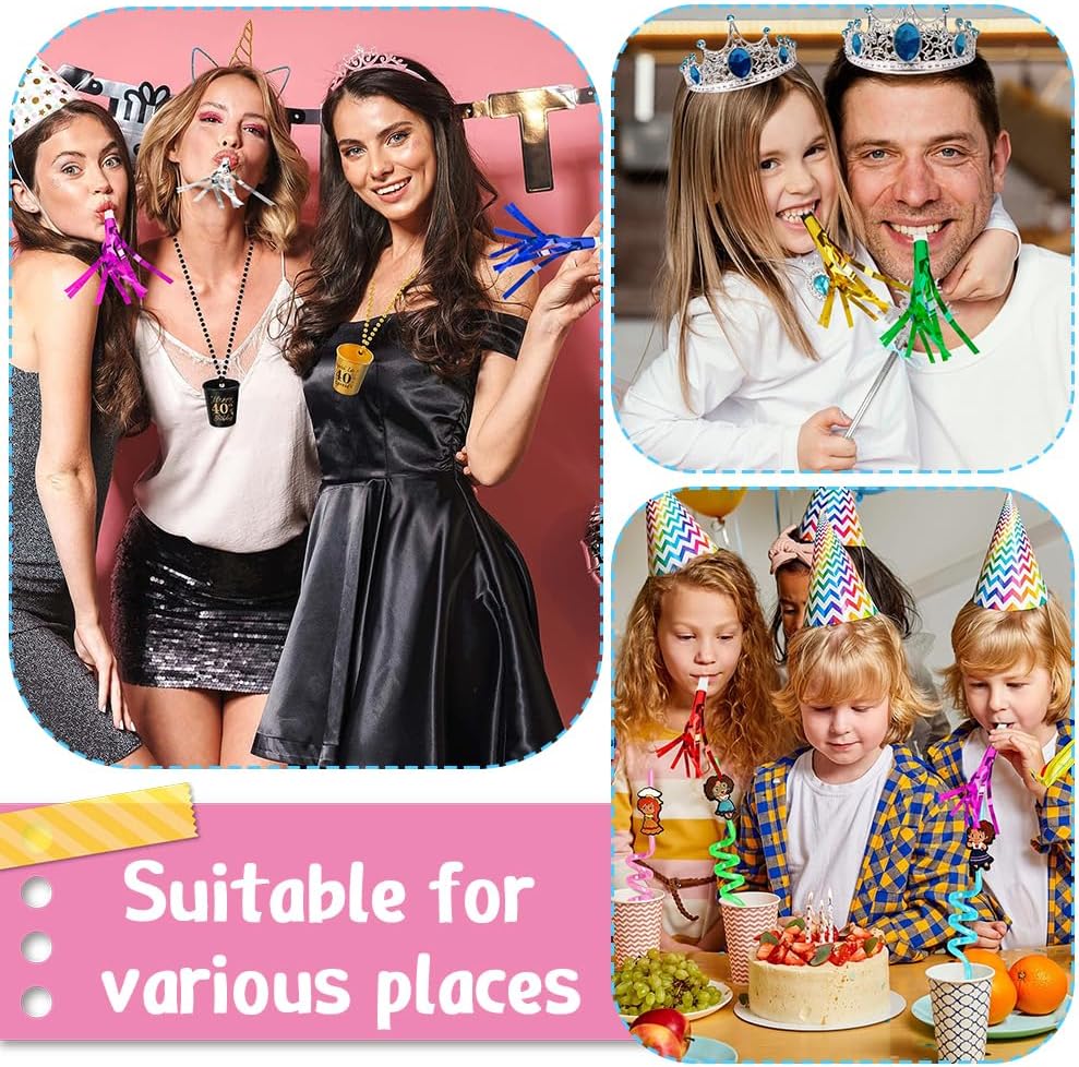 • 24 PCS Party Noise Makers: Our noise makers are the perfect addition to any celebration! With their vibrant colors and fun sounds, they are sure to liven up your sporting events, nye party, adult party, gold party, adult birthday party, 50th party, surprise party, new years party, funny party, Halloween party, and new years eve party. adult party favors noise makers for sporting events noise maker party blowers gold party favors party favors for adults party blowers for s party noise makers