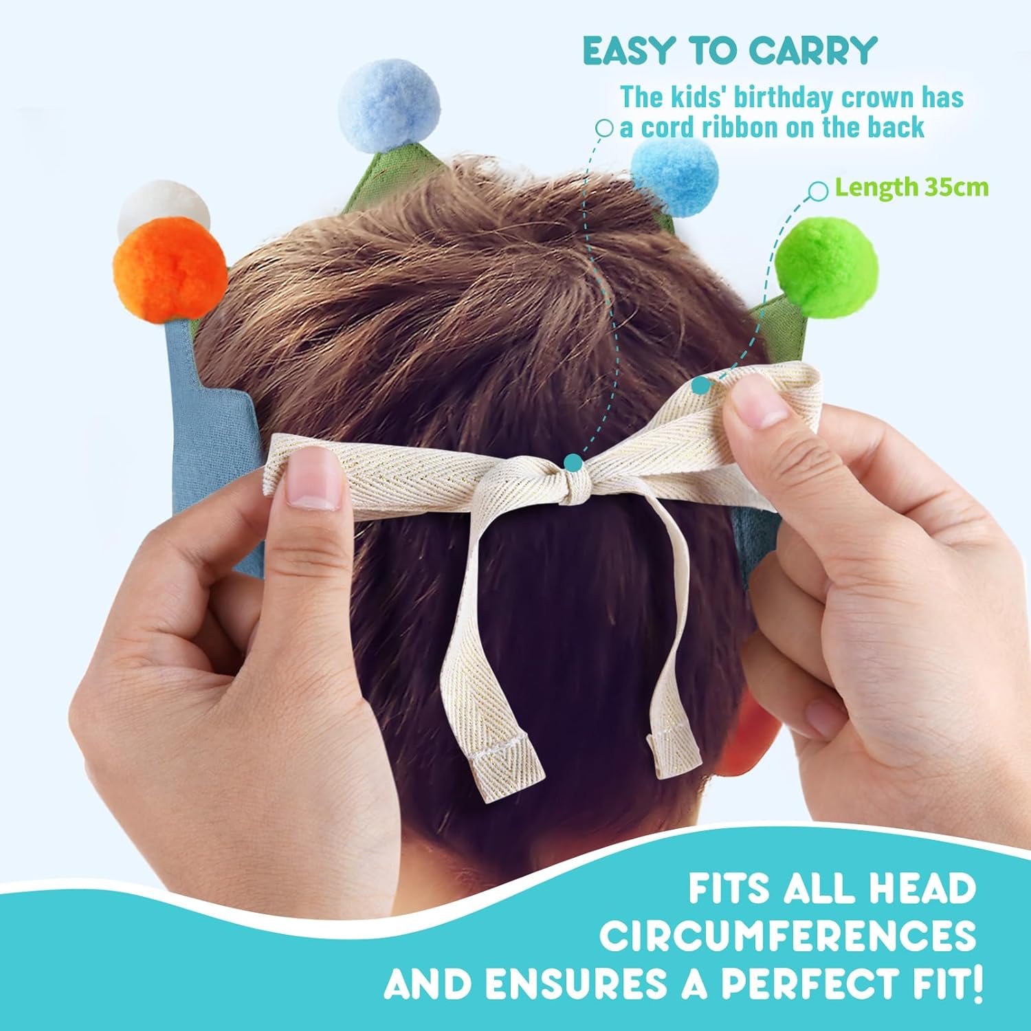 • โ™ป๏ธ Reusable โ€“ Celebrate Every Birthday from Ages 0 to 9 Includes 12 safe badges (9 number patches and 3 birthday-themed icons), perfect for switching out and celebrating every birthday from age 0 to 9. The birthday boy crown for kids is made of durable fabric and designed for long-term reusable useโ€”reducing waste while creating lasting memories for each special birthday