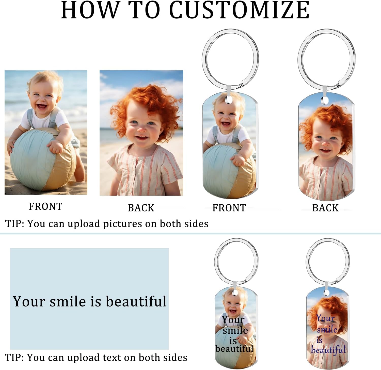 • 【High Quality Material】Custom keychains with pictures are made of stainless steel and engraved with advanced laser technology, Ensure your images and text are clear and easy to read for long-term use without wearing off or peeling off