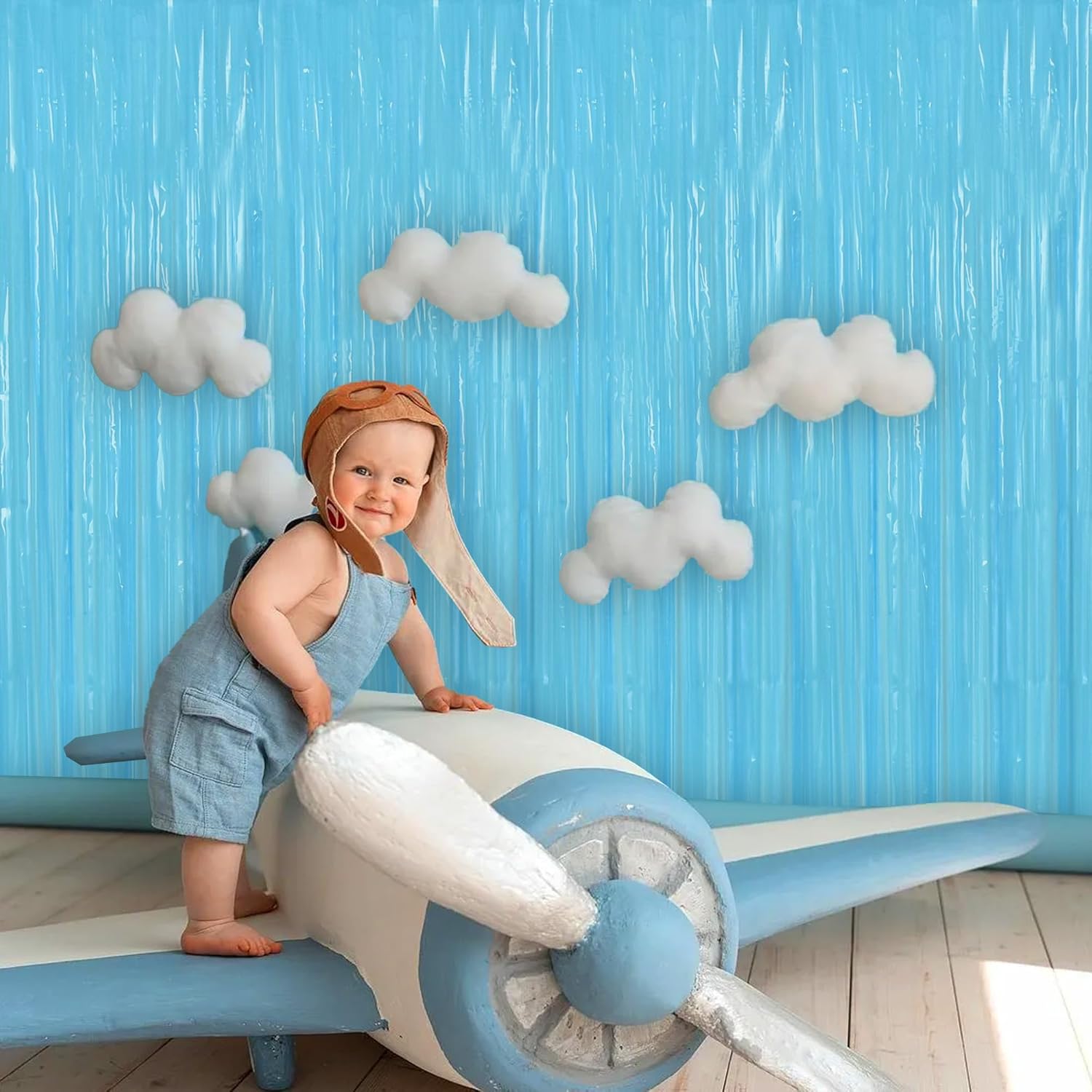 BEISHIDA 2Pcs Light Blue Door Streamer Fluorescent Blue Backdrop Blue Foil Fringe Curtains Tinsel for Birthday Baby Shower Backdrop Wedding Party Decoration (3.28 ft x 6.56 ft)