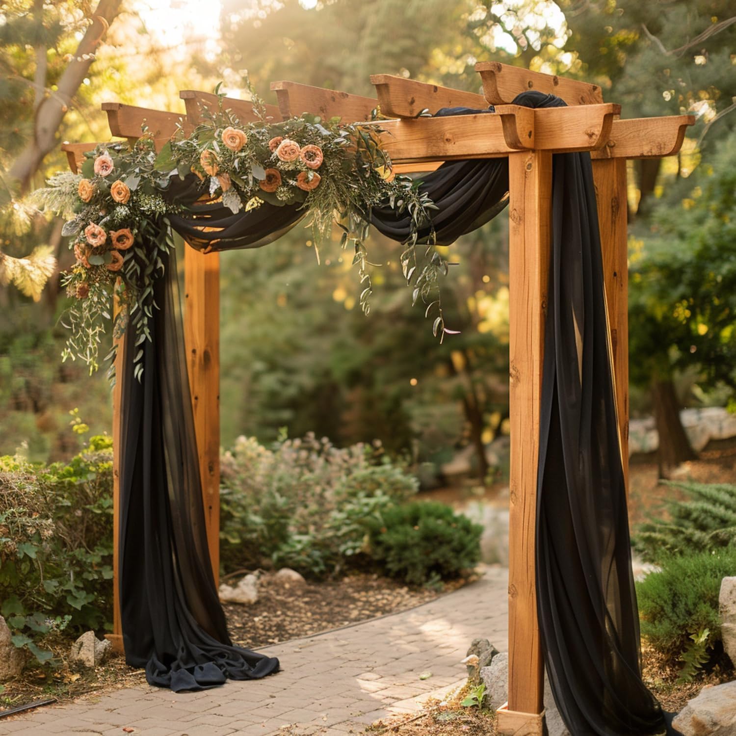 Wokceer Wedding Arch Draping Fabric 28.7" x 20FT Black Sheer Backdrop for Ceremony, Birthday Party, Bridal Shower Decoration
