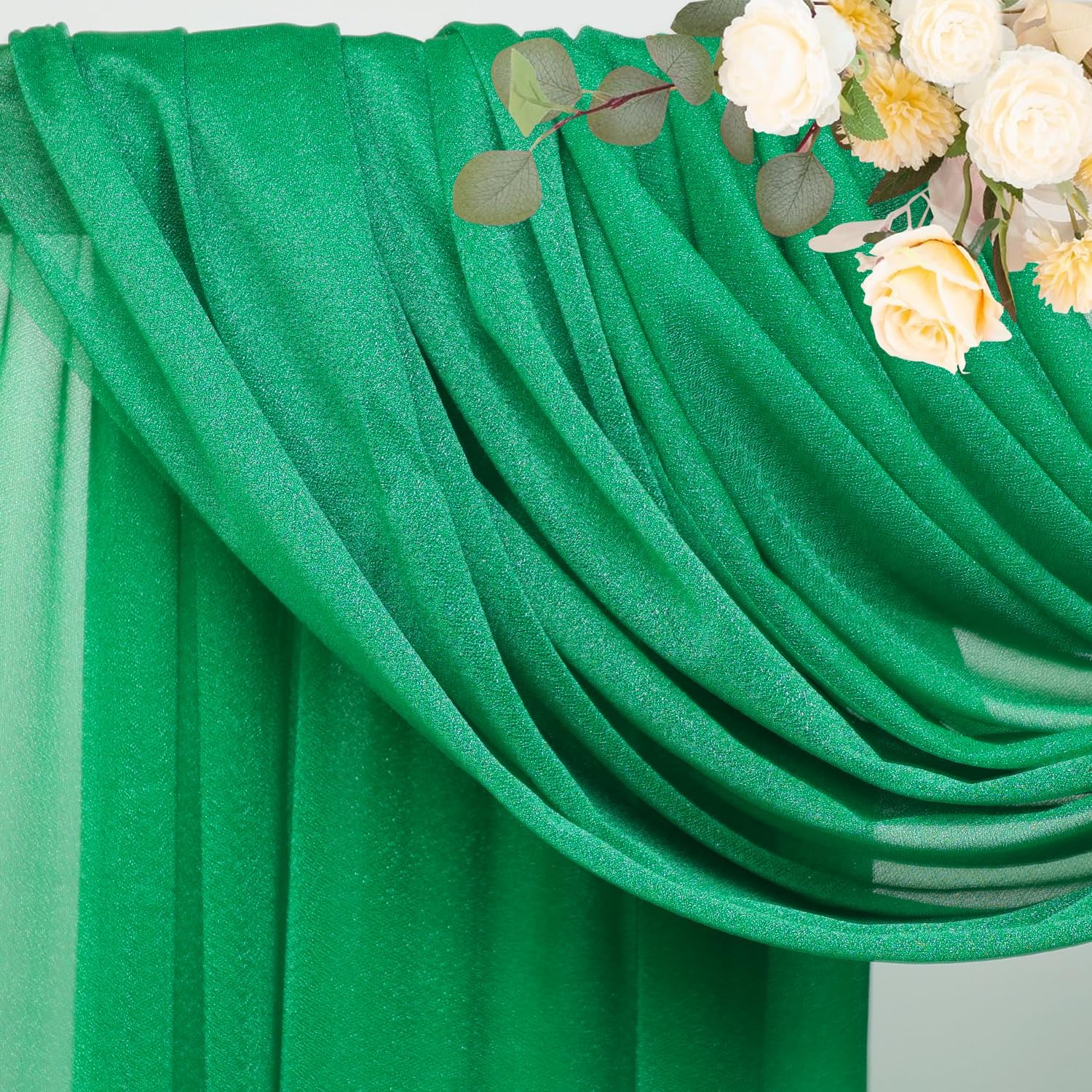 Wokceer Wedding Arch Draping Fabric 2 Panels 28.7" x 20FT Emerald Green Drapes Sheer Fabric Backdrop Arch Draping Fabric for Wedding Ceremony Birthday Party Bridal Shower Decoration