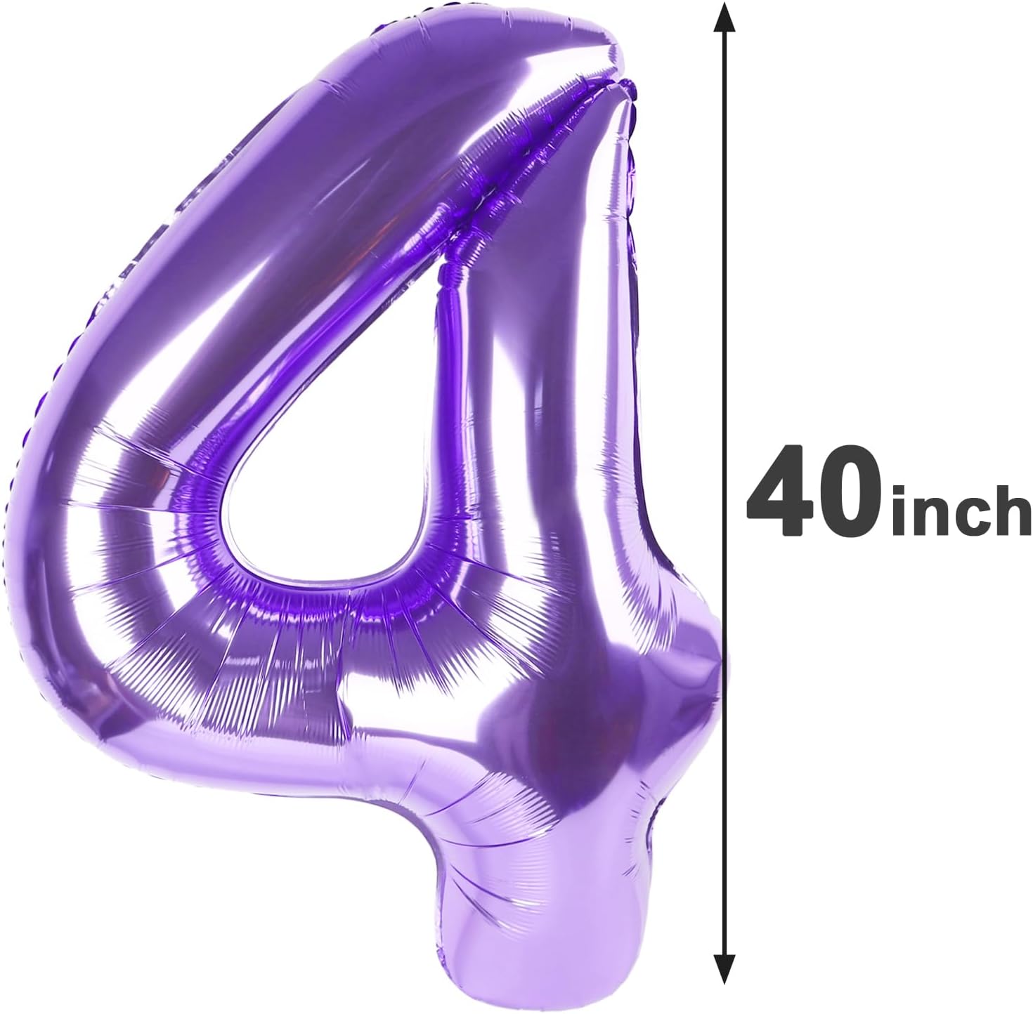 Jumbo Mylar Purple Number 4 Balloon 40 Inch, Big Number 4 Balloons Birthday Decorations, 4th Four 4 14 24 24 44 54 64 Year Old Birthday Party, Large Size Digit Numbers Balloon Supplies