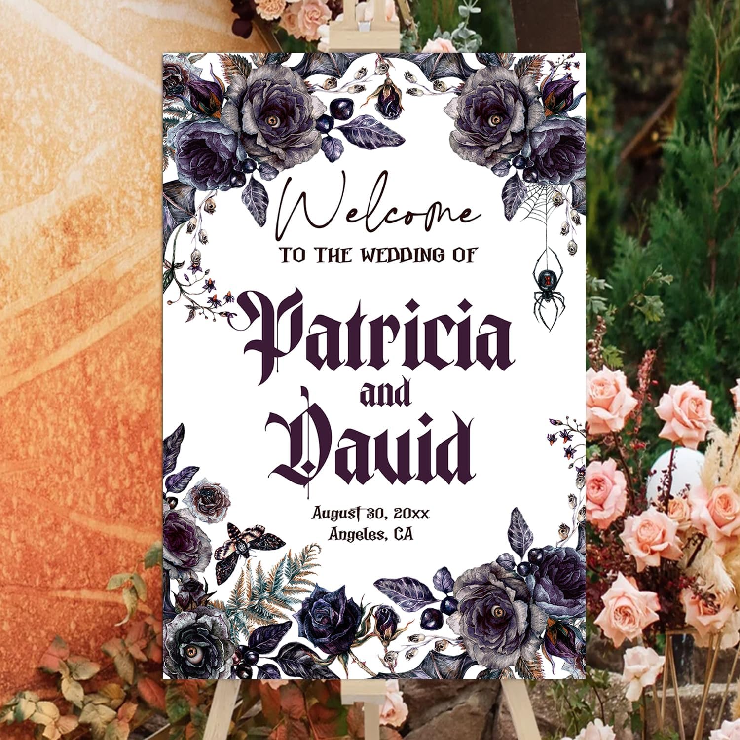• A stunning choice for those planning a Gothic-inspired wedding or a Halloween-themed celebration. Whether you're exchanging vows on All Hallows' Eve or simply love the allure of Gothic aesthetics, this welcome sign will captivate your guests and make a bold statement.