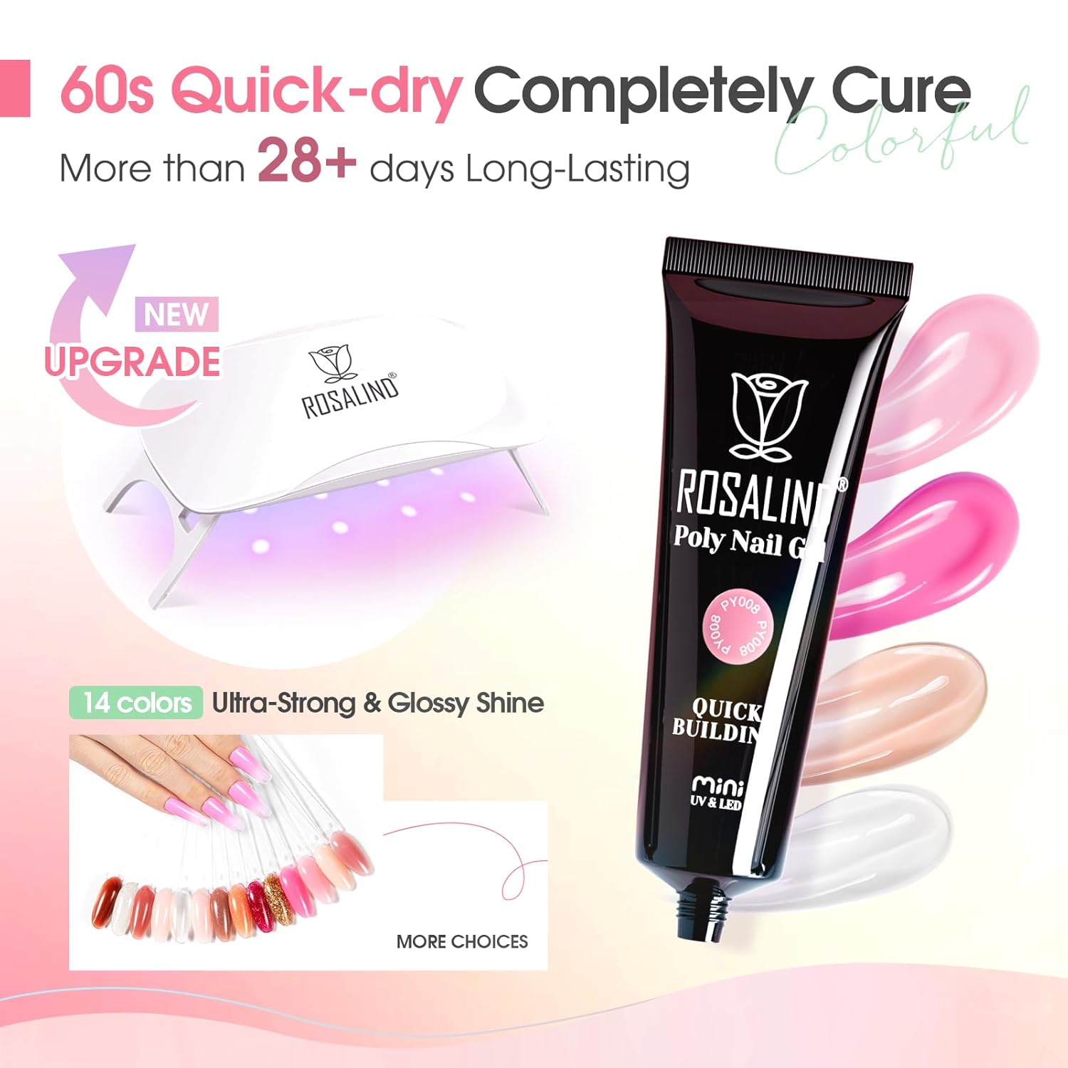ROSALIND 14 Colors Poly Nail Gel Kit with Mini Nail Lamp Pink Brown Poly Nails Gel Kit Starter Kit With Slip Solution Kit Pink Extensions Gelfor Nail Manicure Beginner