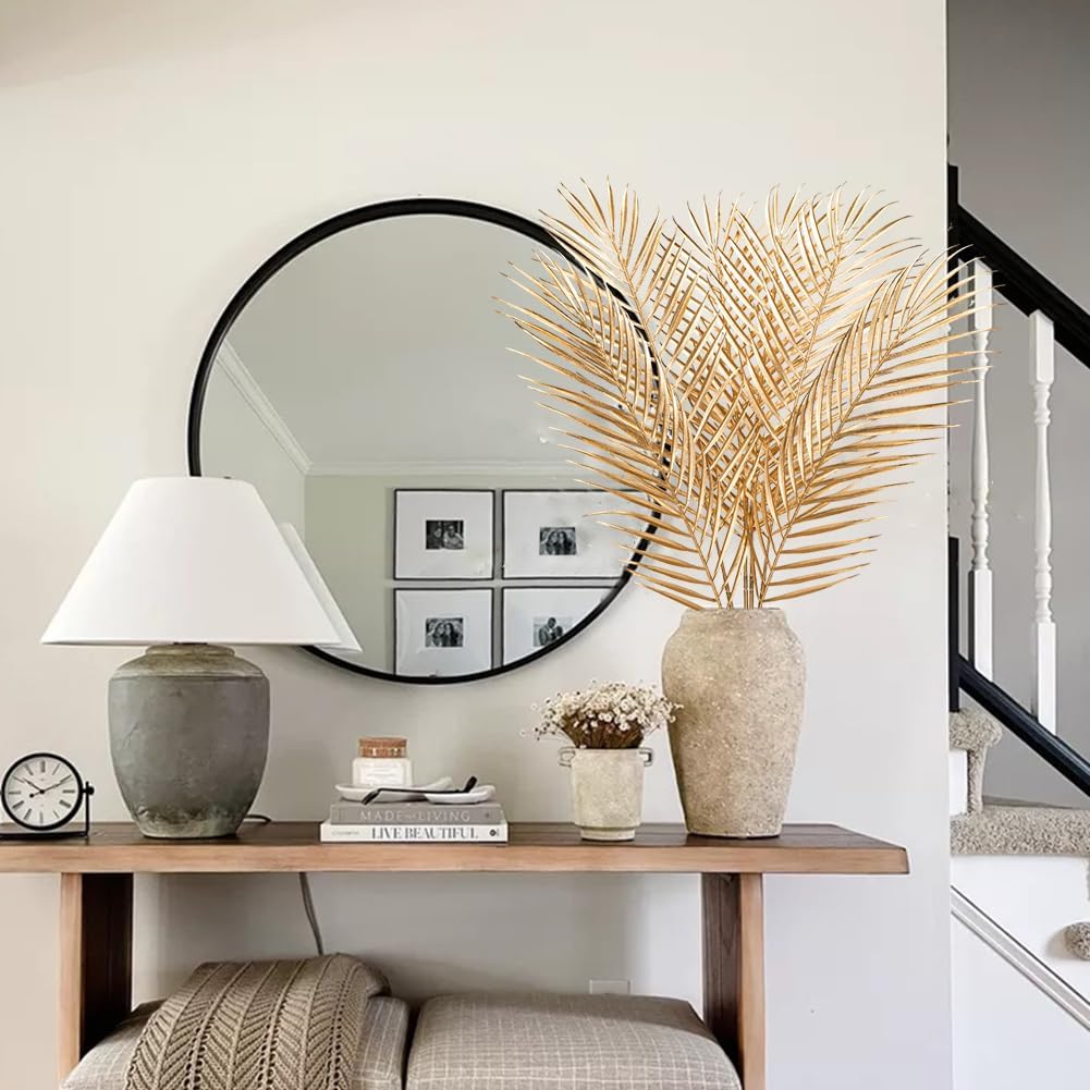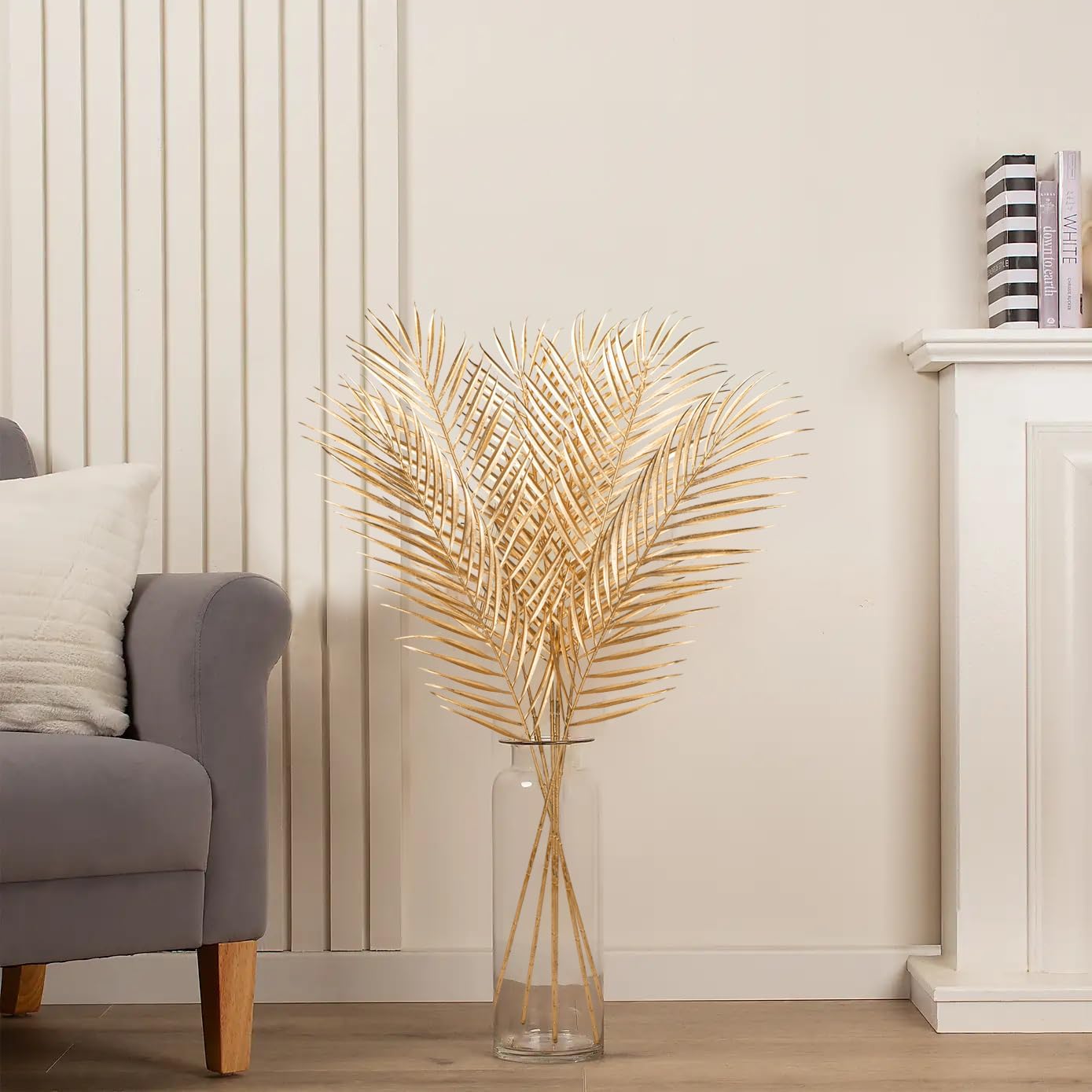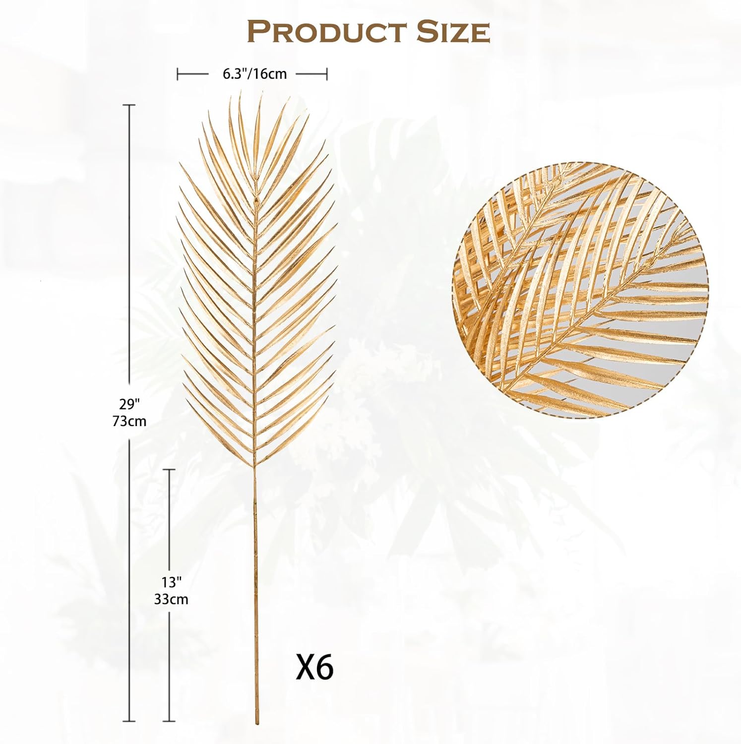 • Premium Material- Artificial gold palm leaf made of durable fabric, the surface of the leaves is glossy and the veins are clearly printed, Bendable palm stem to fit your vase or adjust the shape make it looks more real.