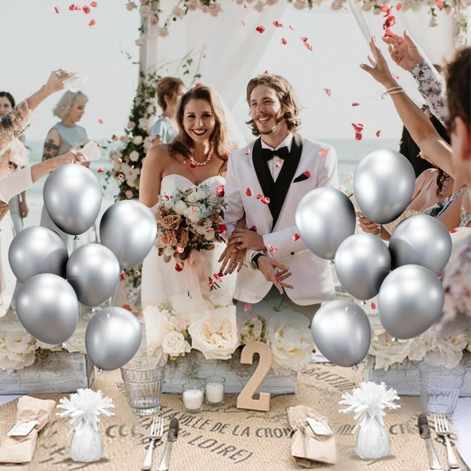 12PCS Balloon Weight Metallic Heavy Solid Balloon Pendant Pack Holder For Table Centerpieces Birthday Wedding Chrismas Party Decoration (White)