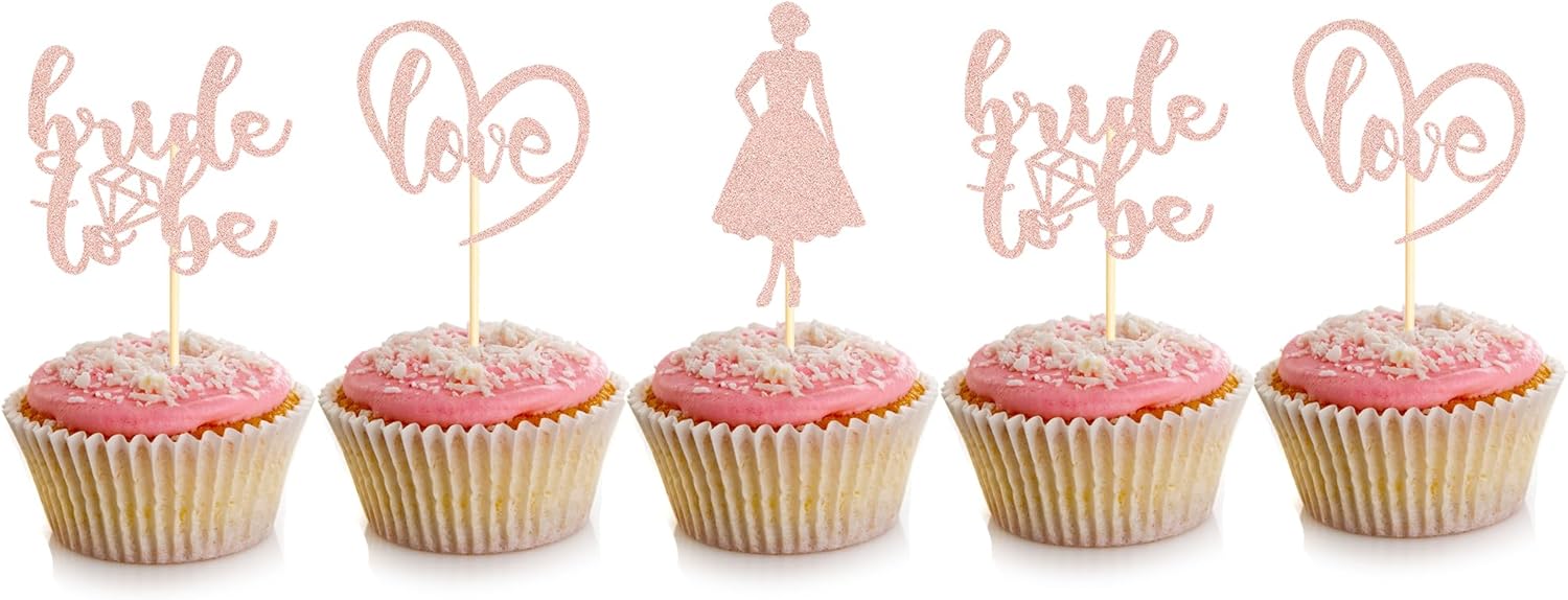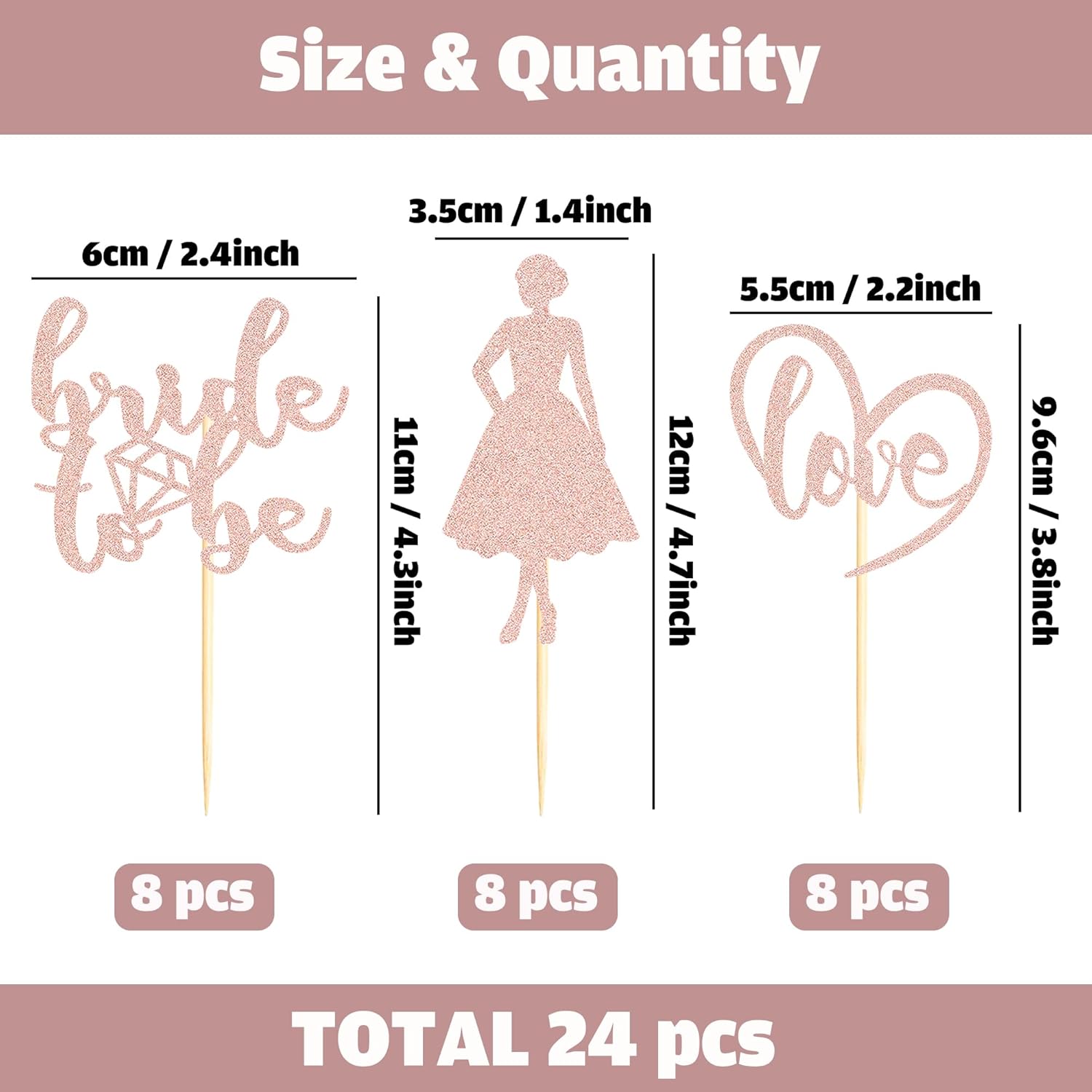 • Unique Design: This 24PCS Bride to Be Cupcake Toppers with Heart Dress to make your Wedding Engagement party stand out! The delicate design like your a match made in heaven makes your dessert look more romantic. Shimmering glitterscreate a lovely and sweet feel for your wedding party