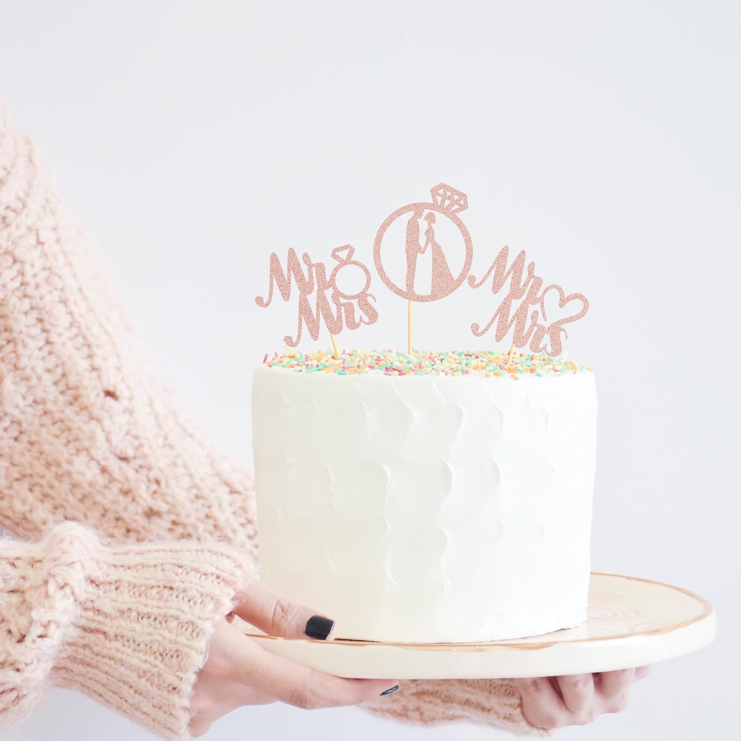 • Package included: 3PCS Rose Gold Glitter Miss to Mrs Cupcake Toppers add "ring"sign. Already assembled so you can insert into wedding engagement party decoration, which make your cake icing on the cake. Size:W 2.3 inch * H 4.72 inch / W 6 cm * H 12 cm(Including Stick)