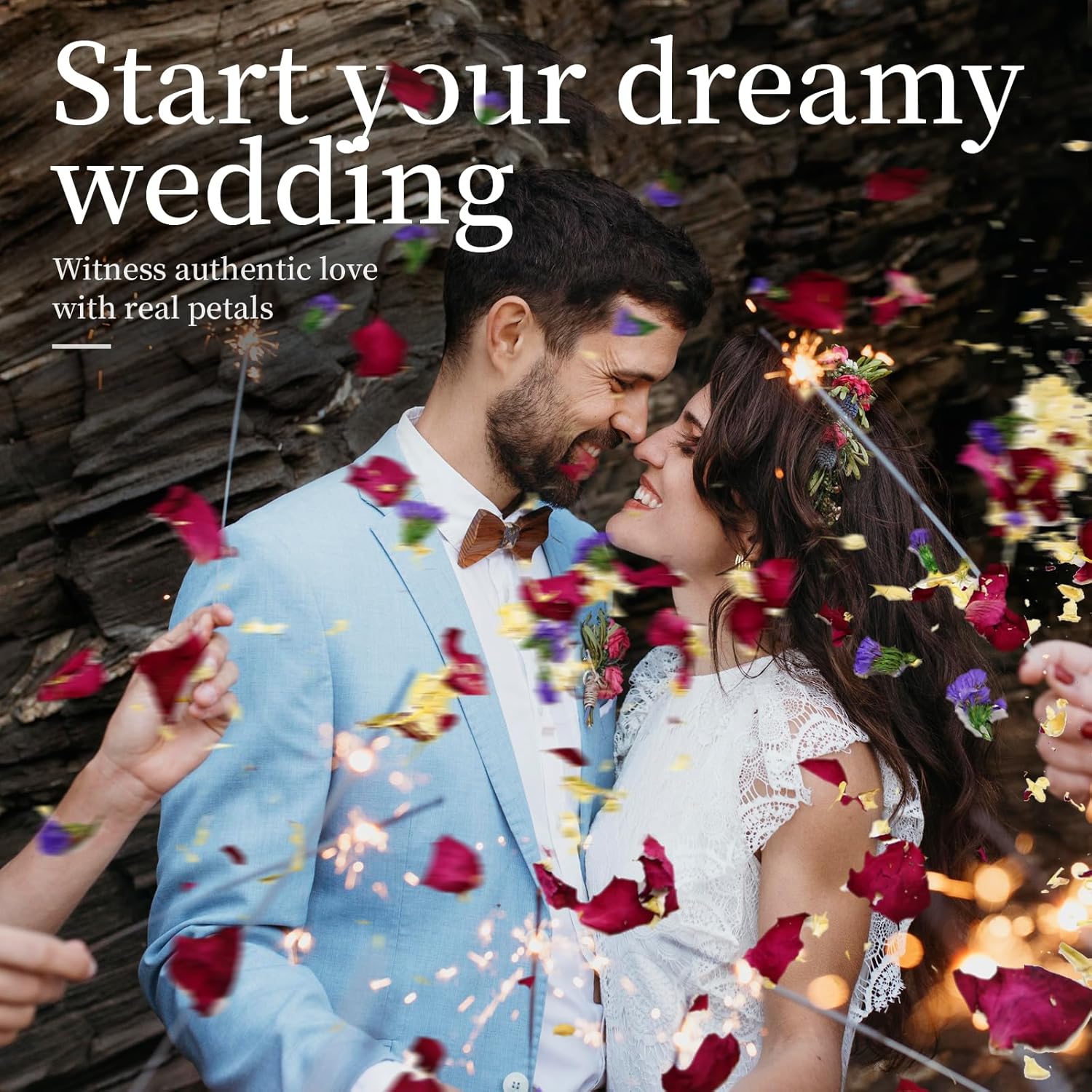 • Add Romantic Moments: One of the most cherished traditions at weddings is the joyful throwing of confetti or flower petals to celebrate the newlyweds. With our all-natural, dried flower confetti, you can add a burst of color to your Wedding Album, TikTok, Facebook, and Instagram feed. Every picture tells a story, let yours be vibrant, joyful, and eco-friendly