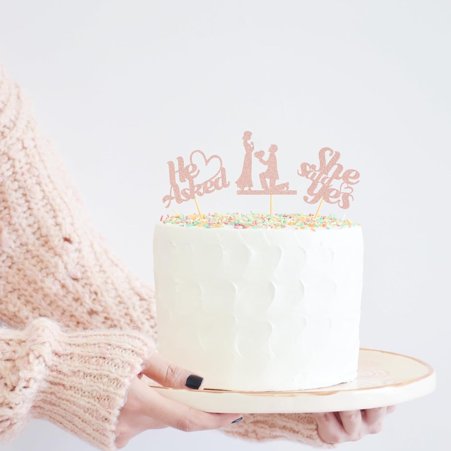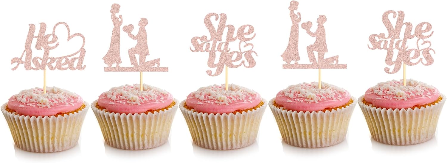 • Package Included: 3PCS Rose Gold Glitter He Asked She Said Yes Cupcake Toppers add "propose"sign. Already assembled so you can insert into wedding engagement party decoration, which make your cake icing on the cake. Size: W 2.3 inch * H 4.72 inch / W 6 cm * H 12 cm(Including Stick)