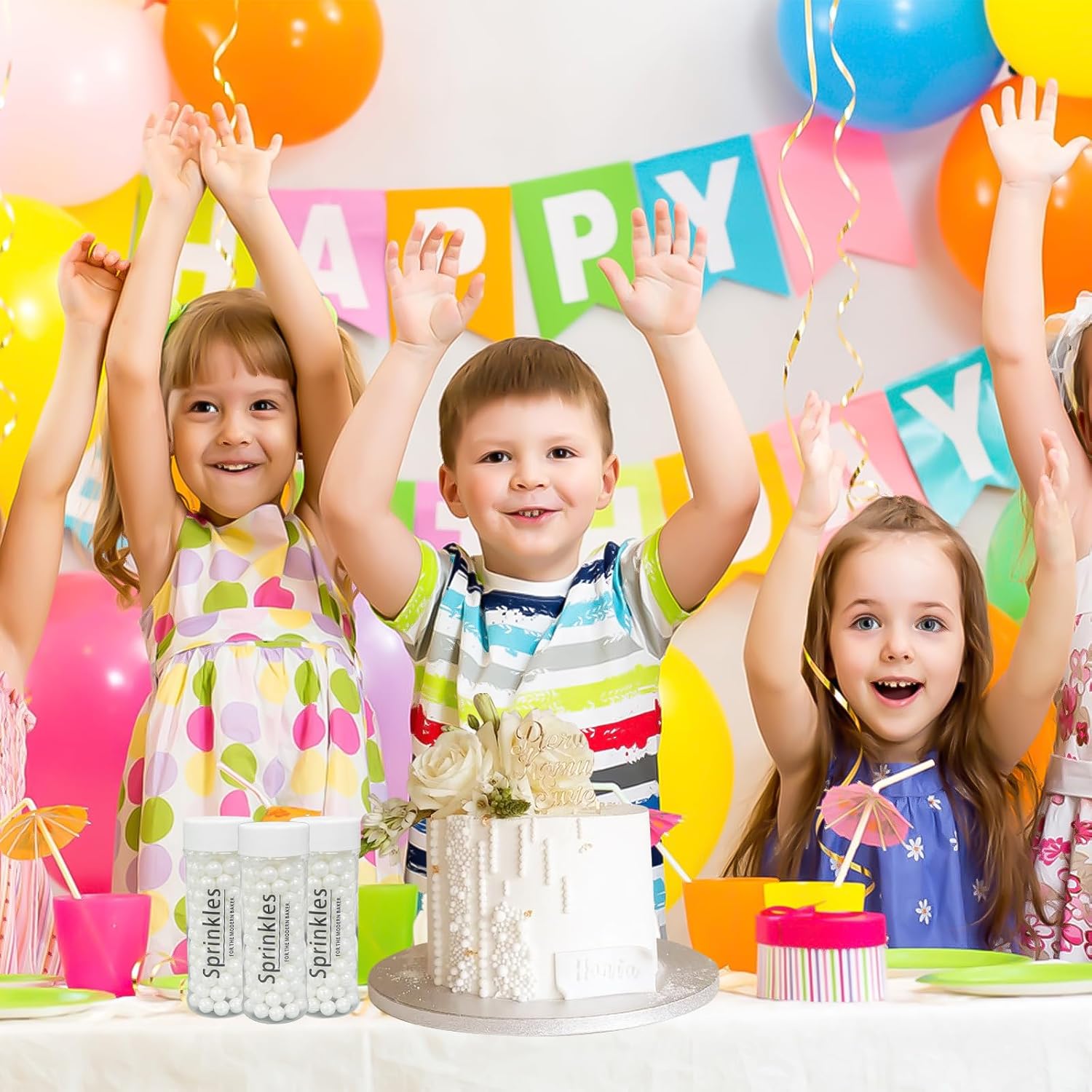 • 【Easy to use】: These white ball sprinkles can be used in many ways, for example, you can directly sprinkle them on food in large quantities, which is amazing and easy to use. You also can choose some parts of the sprinkles to decorate, as the icing for the dessert. These edible candy pearl sprinkles are nice decoration such as winter Christmas white themed birthday party, baby shower, wedding,bridal showers, anniversary, engagement etc.