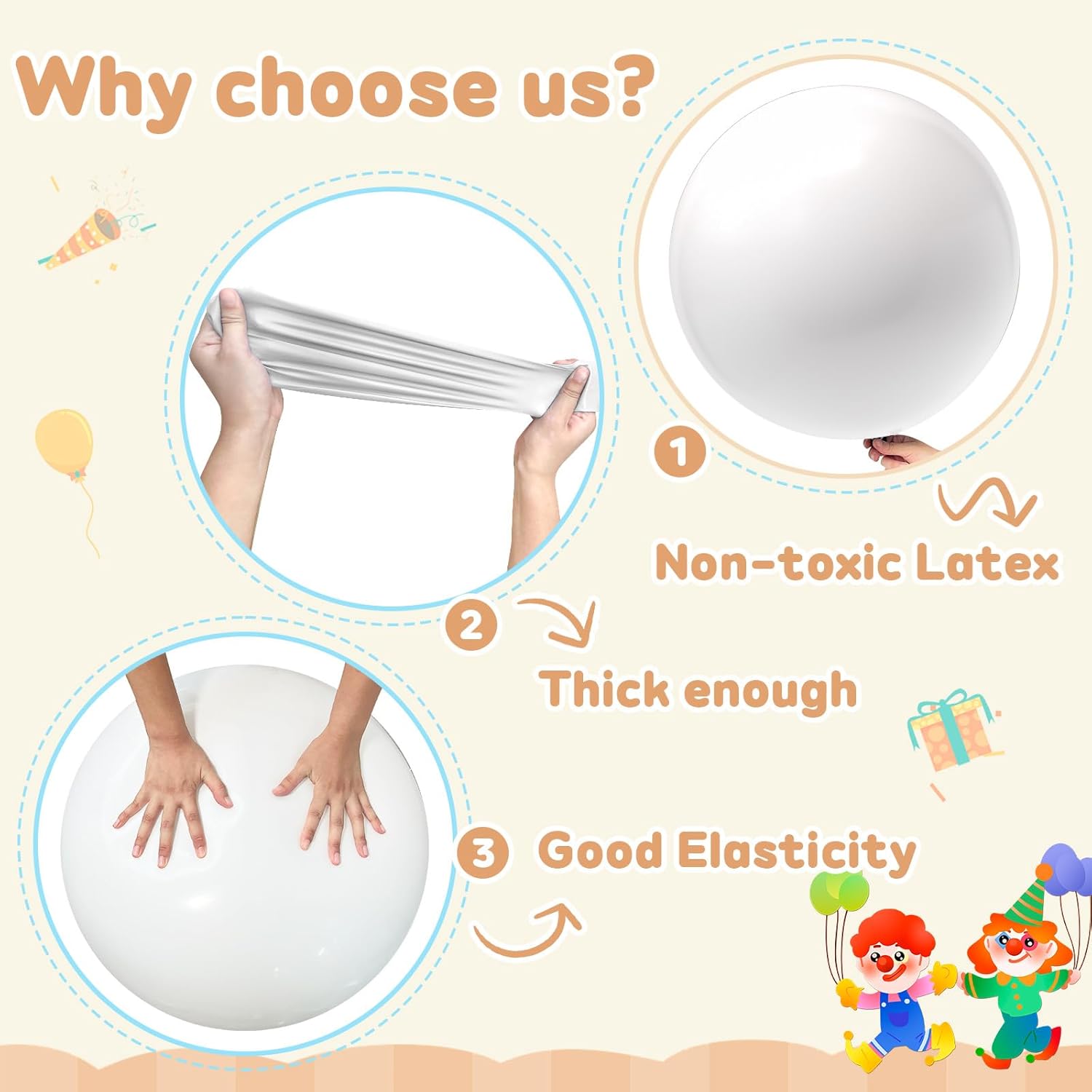 • 【Size& Quantity】 Each sets contains 4pcs 36 inch giant White balloons; big balloons 36inch are safe ,heavy thick, bouncy and Eco-friendly latex material which is durable and long-lasting quality ,these big round balloons Thicker and much strong than typical balloons for longer lasting fun.