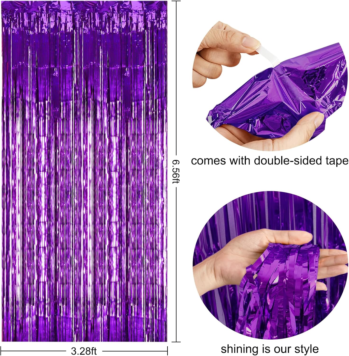 • PACKAGE CONTENTS: 2 x foil curtains: Big size (wide x drop):3.3 x 6.6 feet,6.6ft x 6.6ft in total. Brightly colored quality party decoration photography curtains will surely make your party more fun.