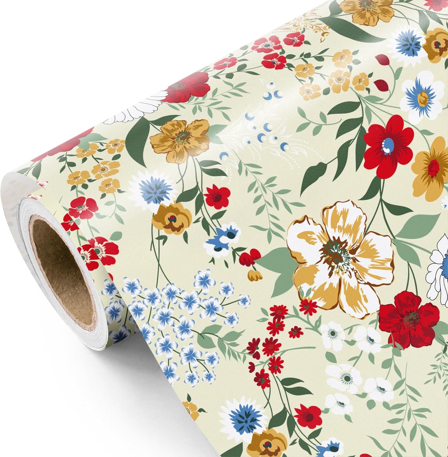 WRAPAHOLIC Floral Wrapping Paper Roll - Mini Roll - 17 Inch x 33 Feet - Wild Flower Wrapping Paper, Perfect for Girls Women Birthday, Wedding, Bridal Shower
