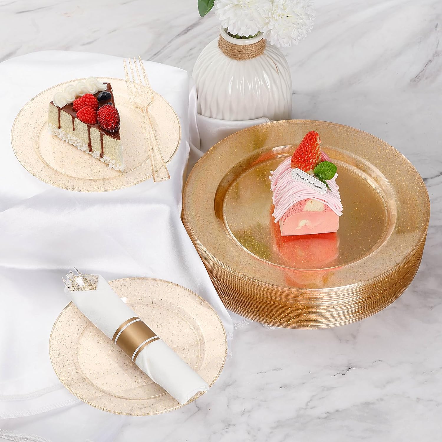 • ELEGANT DESIGN - These Gold Glitter wedding plates look premium and similar to porcelain. Their elegant appearance can meet the aesthetic requirements of all people, and they can be used for any occasion without a sense of incongruity.