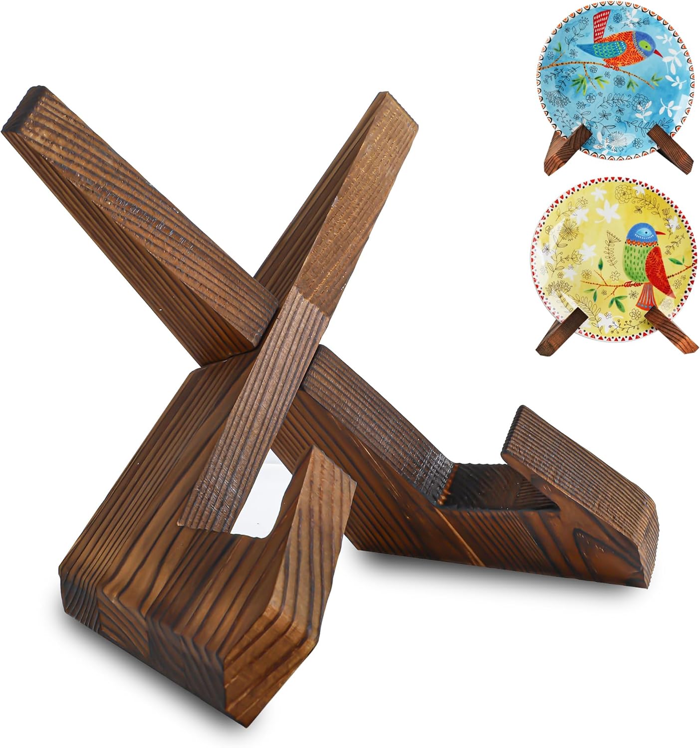 • Rustic Elegance – Solid pine wood stand with natural grain adds depth to displays, securely holding plates, photos, and art pieces.
