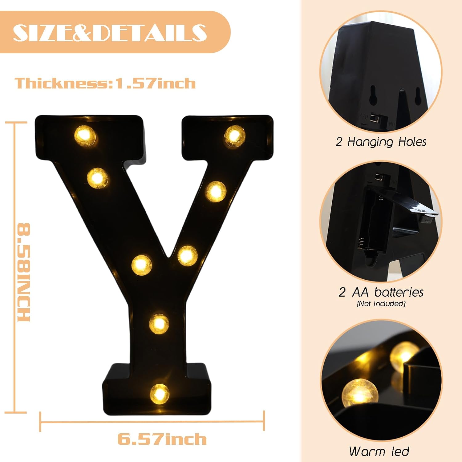 Led Marquee Letters, 8.58 Inch Black Light Up Letters, Small Led Letter Lights, Battery Powered Lighted Letterfor Table, Party, Birthday, Christmas Decor (Black, Letter Y)