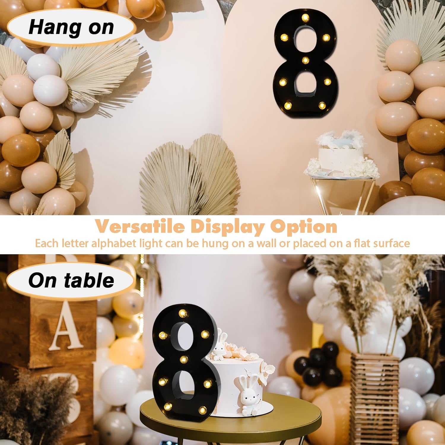 LED Marquee Numbers, 8.58 Inch Led Light Up Numbers for Party, Small Light Up Letters, Battery Powered Lighted Number for Table, Birthday, Night Light, Christmas or Home Decor (Black, Number 8)
