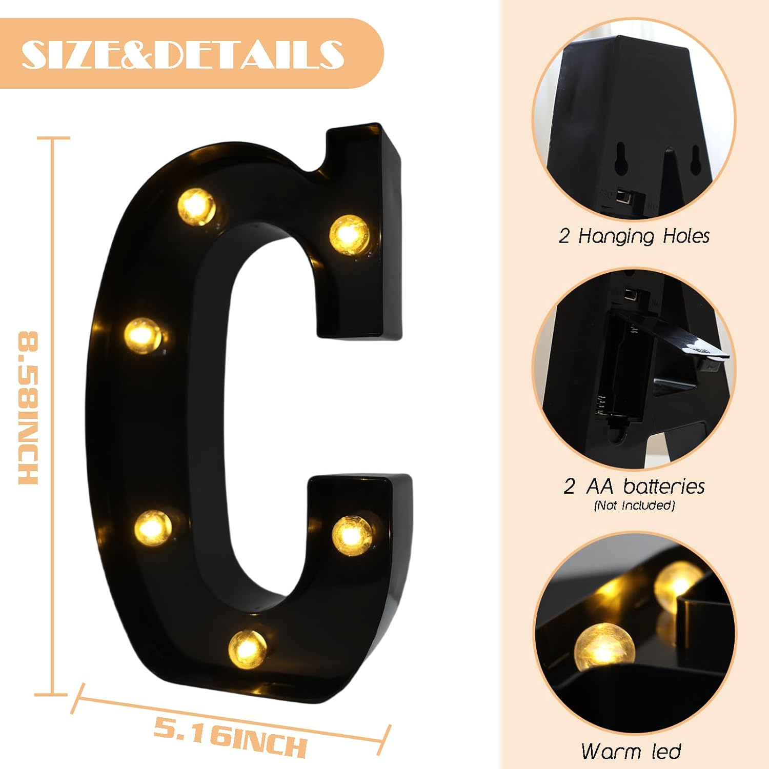 • 【Easy to Operate】 Our led letter lights are easy and convenient to use, with no wiring or outlet required. Simply need 2 AA batteries (not included in package). You can control on/off the switch behind the letter to turn on/off the letter lights.