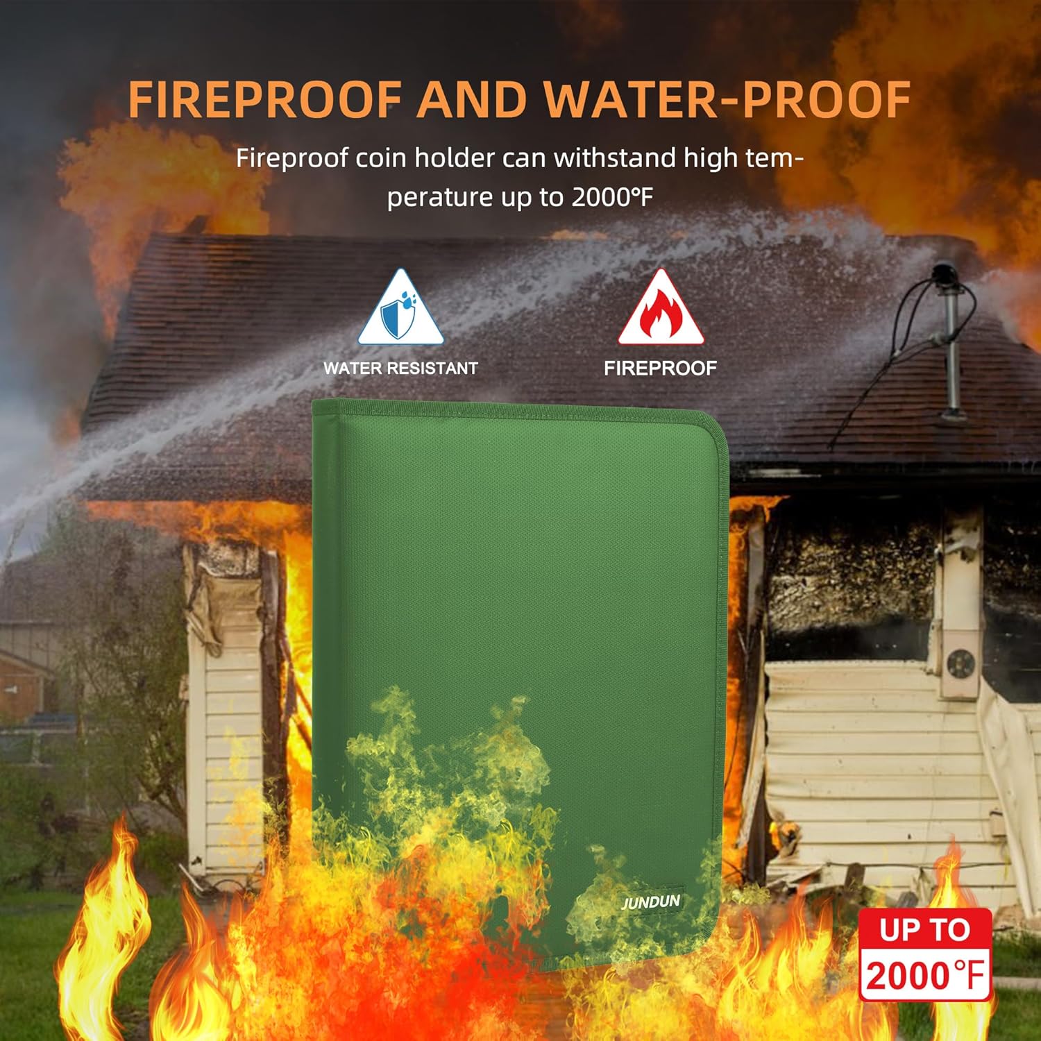 • Fireproof Safe Protection :coin albums for collectors is made of silicone coated material which withstands the temperature up to 2000℉ .It will protect your valuables from the damage in case of fire .Coin collection book for collectors gives you enough time to save your valuables from fire.It is highly recommended that coin collection album is combined with fireproof safe.They will offer you the double fireproof safe protection
