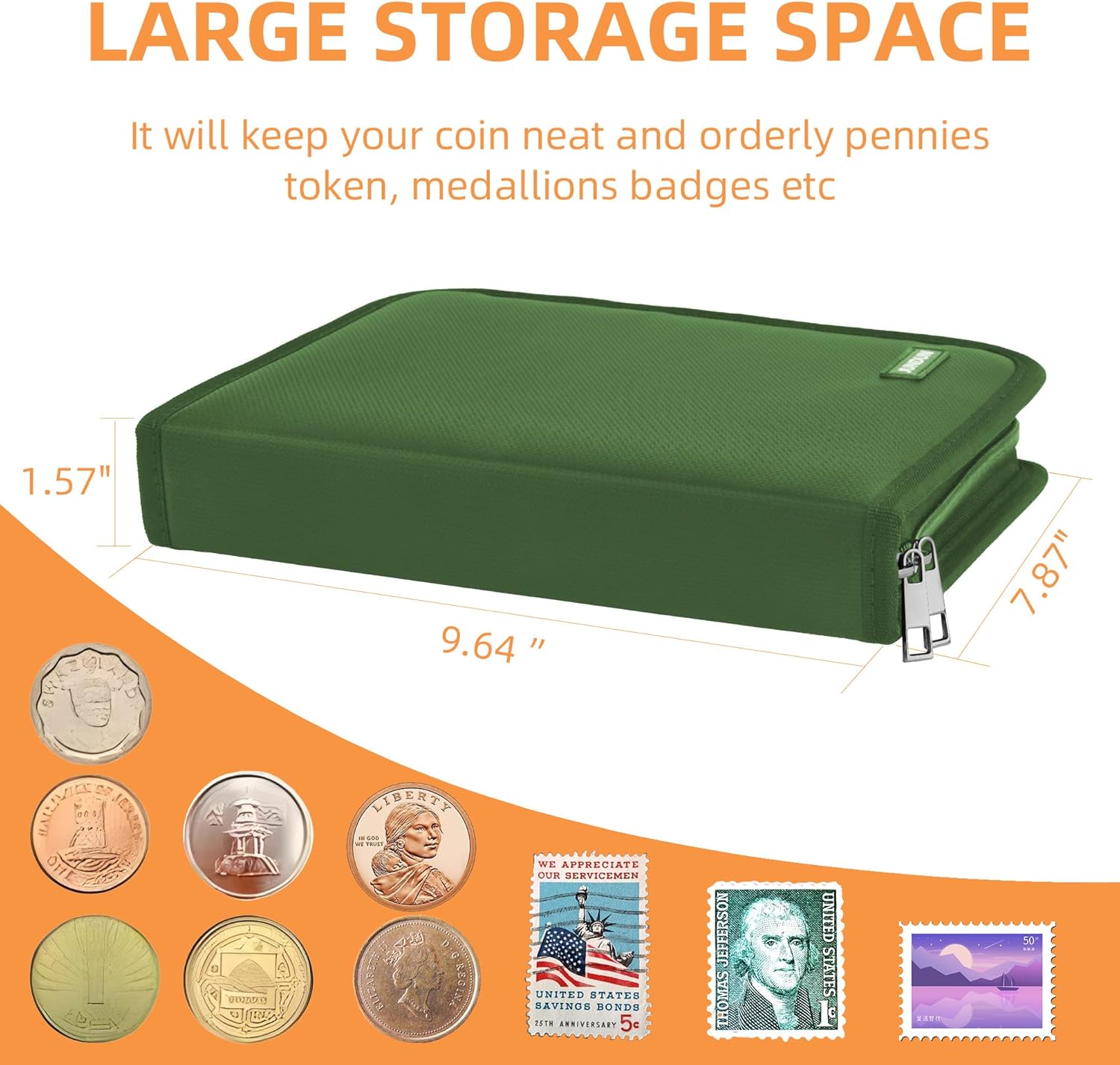 Coin Collection Book for Collector,260 Pockets Fireproof Coin Collection Holder Album,Coin Collection Organizer Storage Box Case Album for 20/25/ 27/30/ 38mm Coins,Green