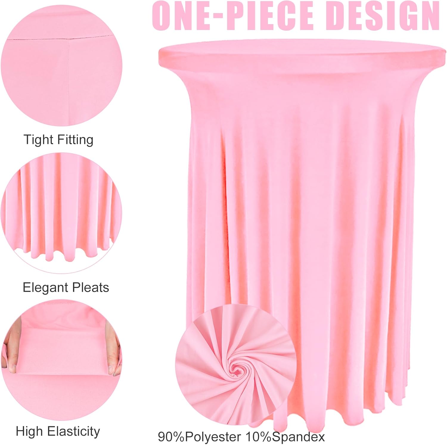 6 Pack Round Cocktail Tablecloth 32"x 43" Spandex Cocktail Table Skirt, Washable Stretch Fitted Table Covers for High Top Bar, Wedding, Party, Events (Pink)