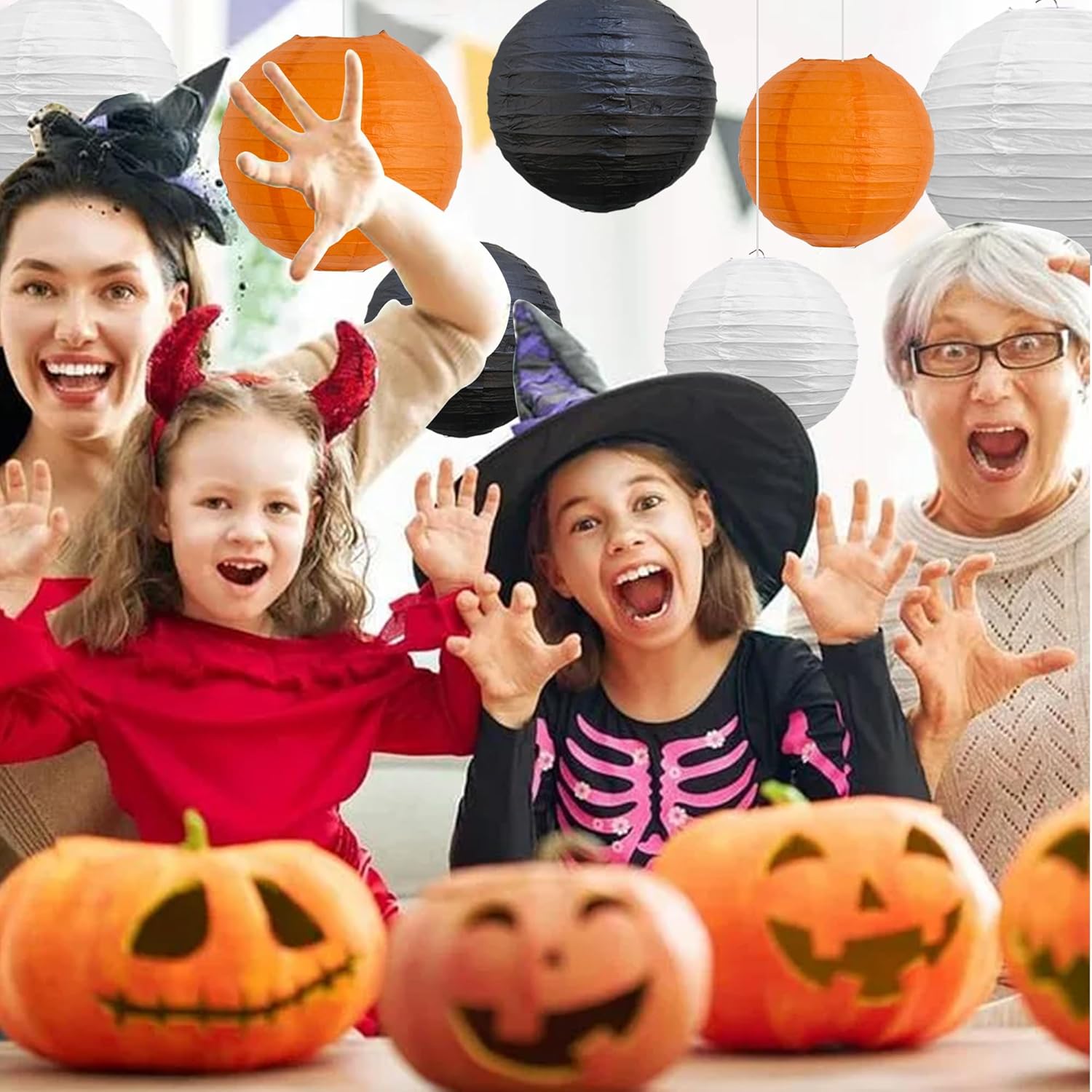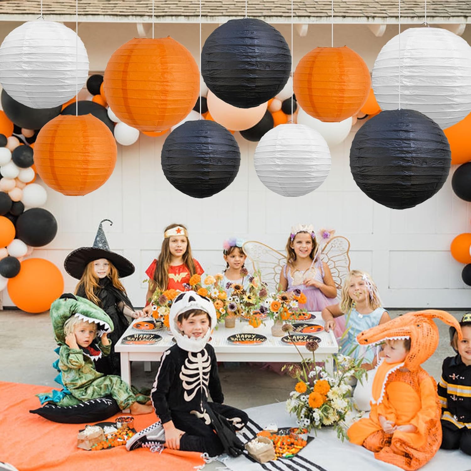 BEISHIDA 12Pcs Orange Black White Paper Lanterns Decorative Chinese/Japanese Hanging Round Paper Lanterns Lamp for Halloween,Birthday, Wedding, Christmas, Bridal,Home Decor, Party Decoration