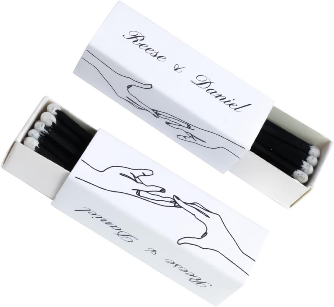 • Elevate your wedding with our Chandler Studio Custom Matchboxes, designed to add a personalized touch to your special day. Each set includes 10 matchboxes, perfect as unique wedding favors that your guests will love. Customize each matchbox with names, dates, or special messages to create memorable keepsakes that reflect your personal style.
