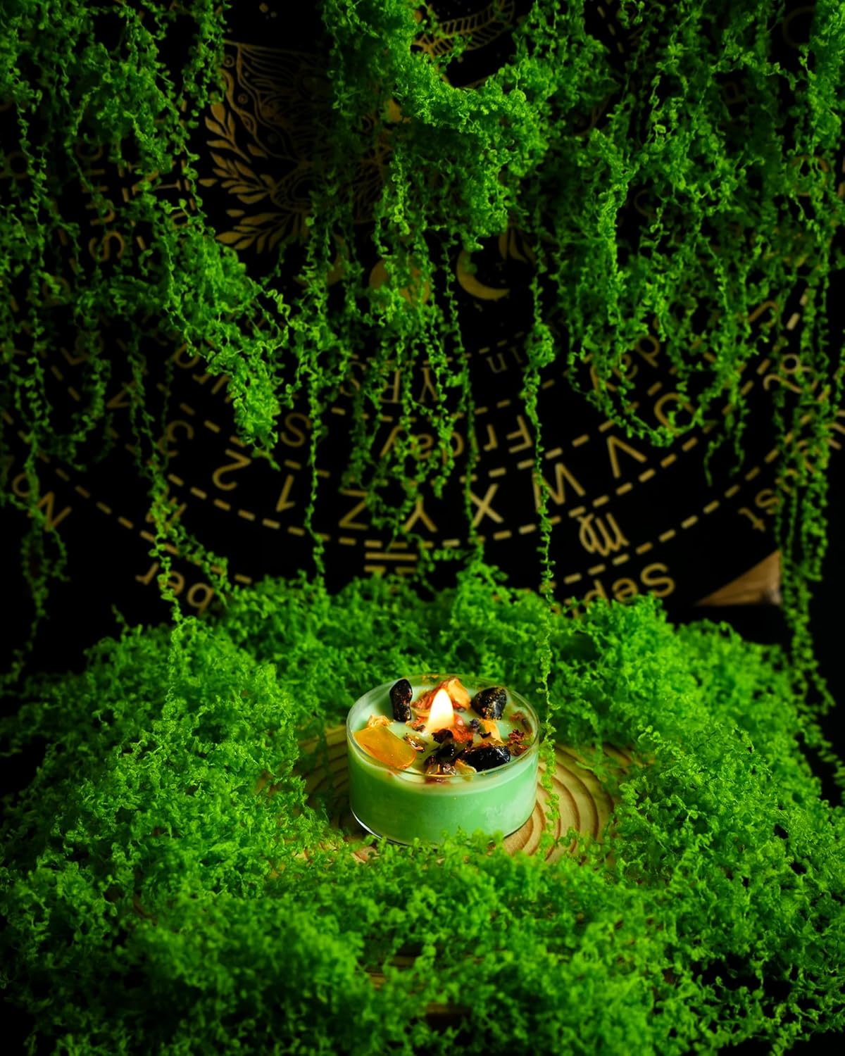 • Various types of crystals: Obsidian is a grounding crystal that protects the aura from negative energies. Uncontrollable anger and fear can affect your health. This candle will bring you calm, relaxation and positive energy.