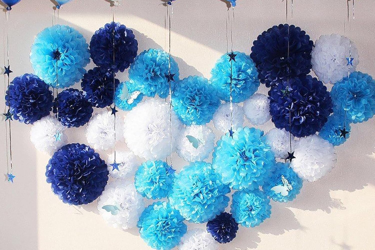 • PAPER FLOWER POM POMS Used in lieu of balloons, for they are more lightweight. They can be scattered as dessert table decor, or placed in vases as unique centerpieces. You can create a wonderful backdrop for your family or friends with it