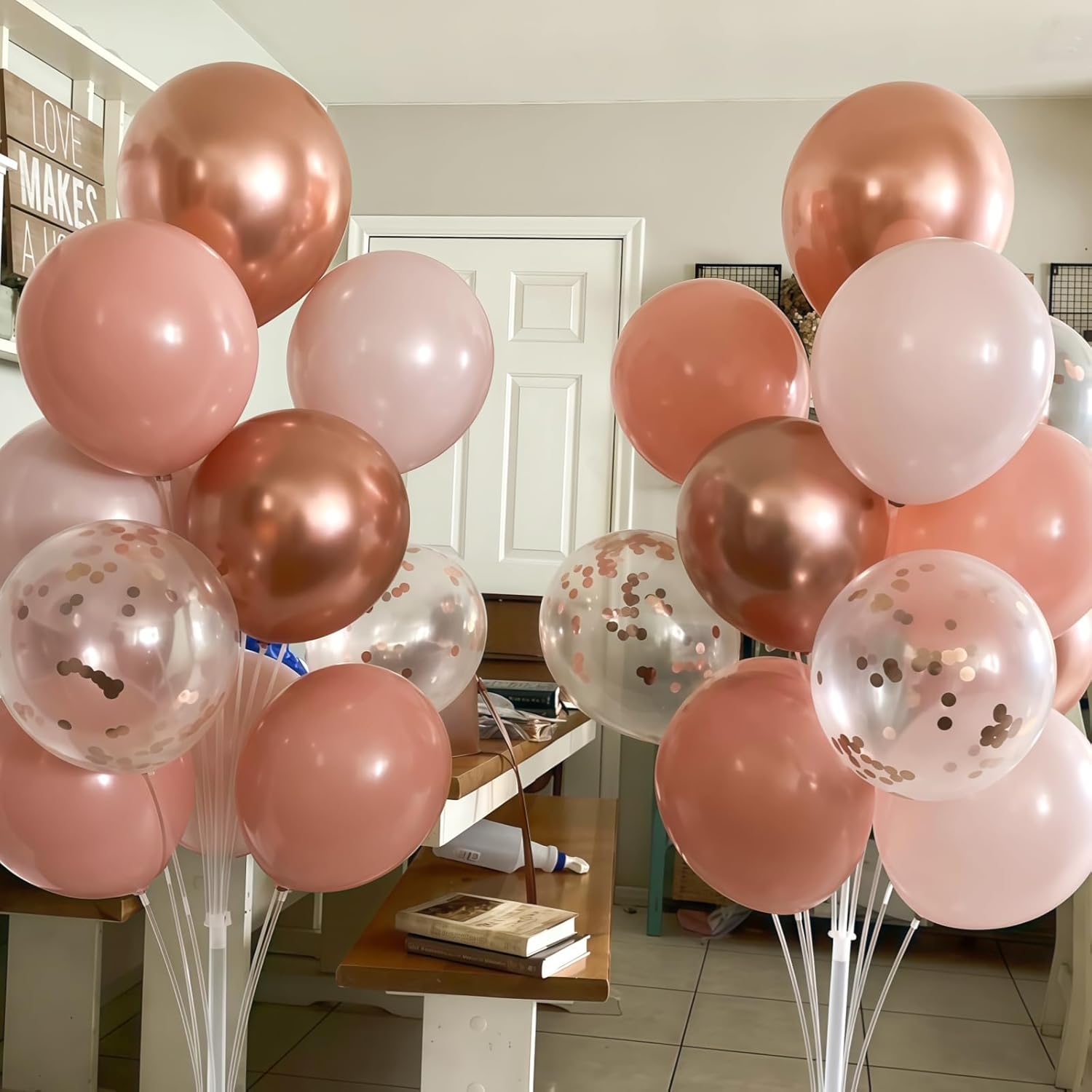 • 🌸 Dusty Pink Balloons Set: This is a beautiful bright balloon, which contains balloons of different colors. Include 12 inch retro blush pink balloon(15pcs), white sand balloon(15pcs), dusty pink balloon(15pcs), metallic rose gold balloon(10pcs), gold confetti balloon(5pcs), 2 rolls of ribbons. You can use these different shades of nude pink balloon kits, DIY balloon combinations to create your birthday party.