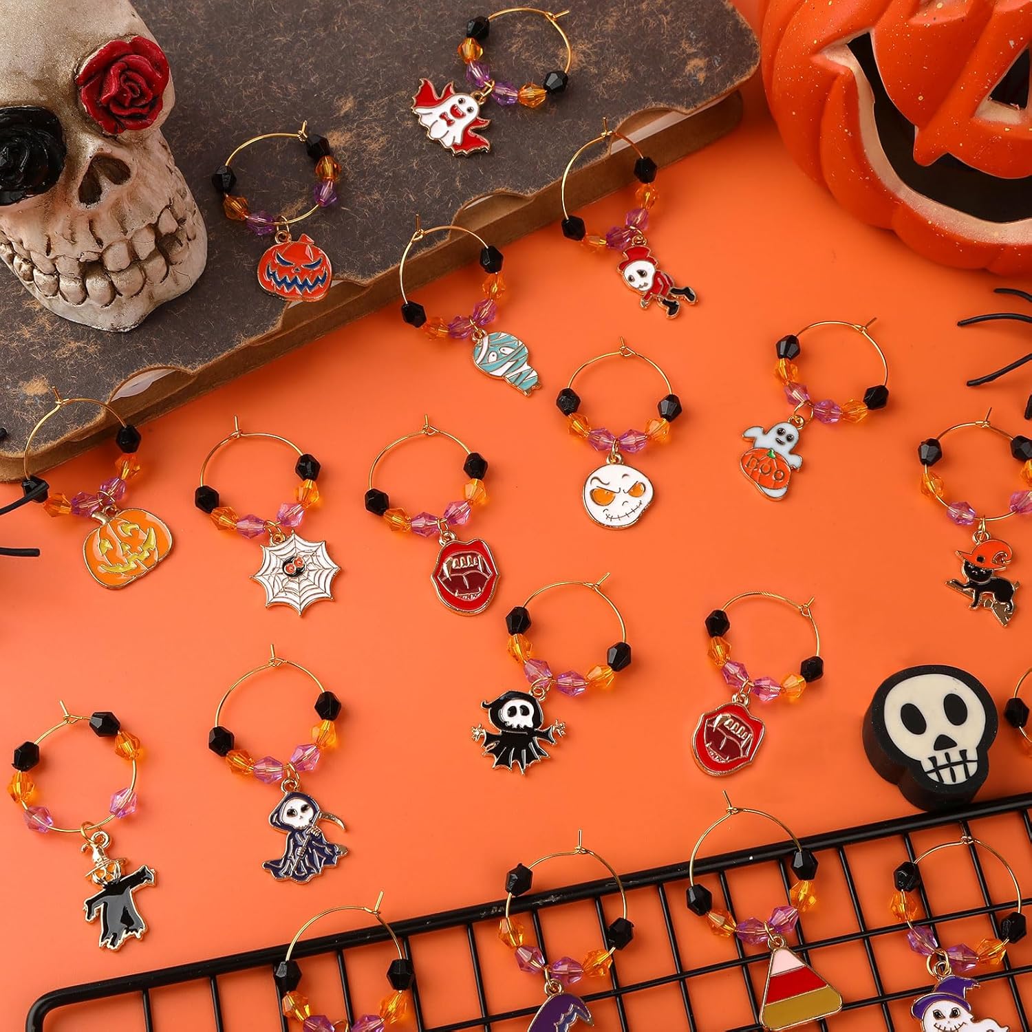 SANNIX 24Pcs Halloween Wine Charms, Wine Charms for Stem Glasses, Glass Identifiers for Halloween Party Holiday Decorations