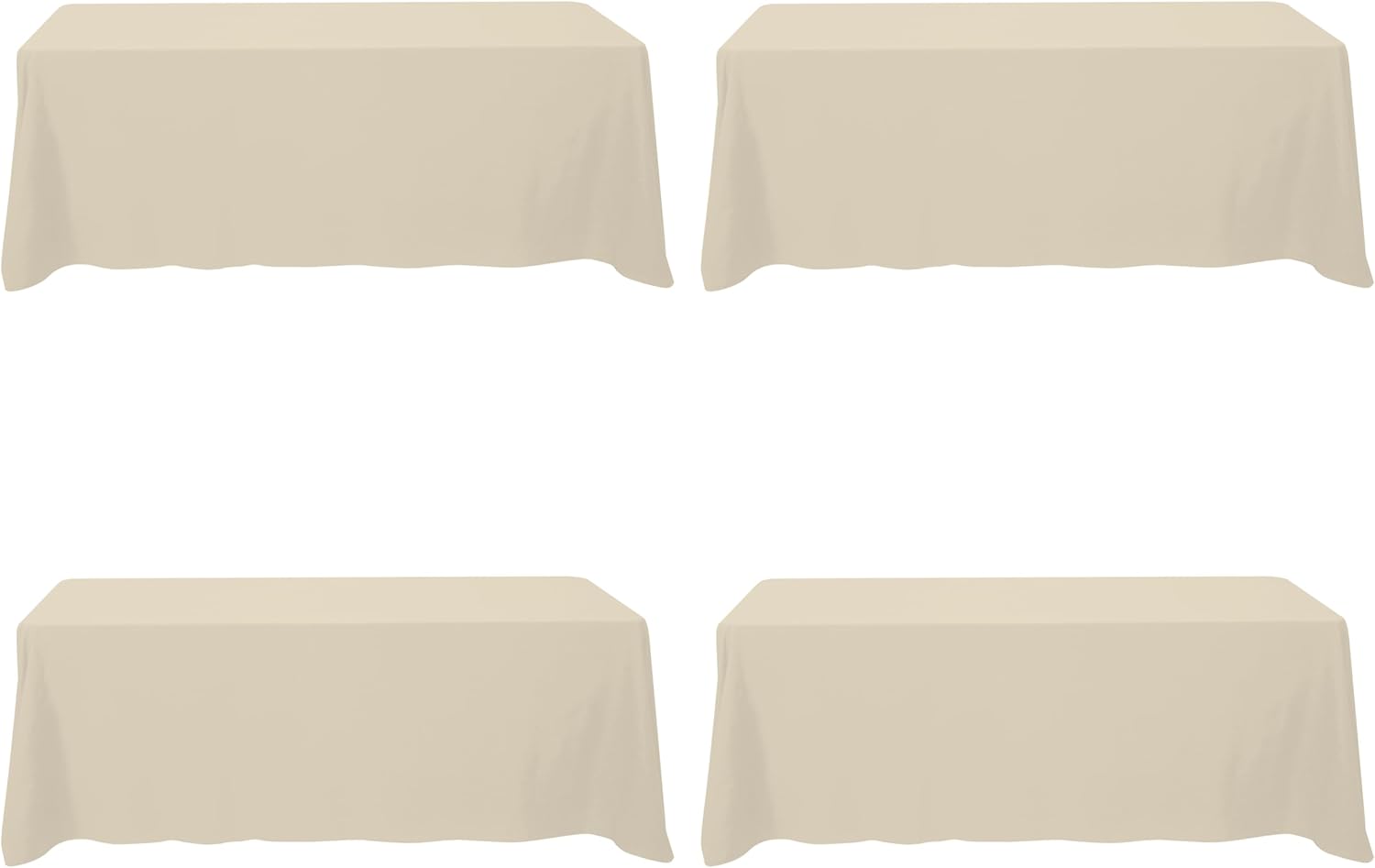 BRILLMAX 4 Pack Beige Tablecloths for 8 Foot Rectangle Tables 90 x 156 Inch - 8ft Rectangular Bulk Linen Polyester Fabric Washable Cloth Cover for Wedding Reception Banquet Birthday Party