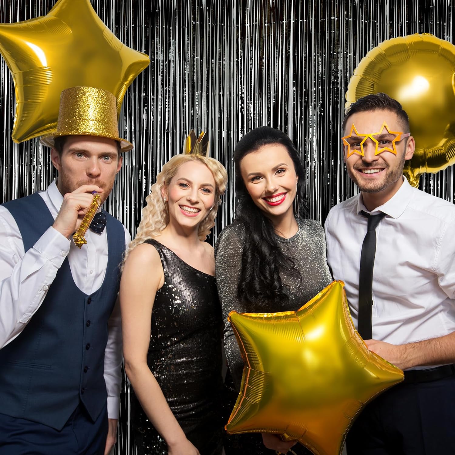 • 【Package Included】2-pack black fringe backdrop, Each Pack of Curtains measures 3.28 ft x 6.56 ft, tinsel metallic streamers are Perfect for Doors or Walls, Create Impressive Decorations for Parties, Events and Photo Booths.