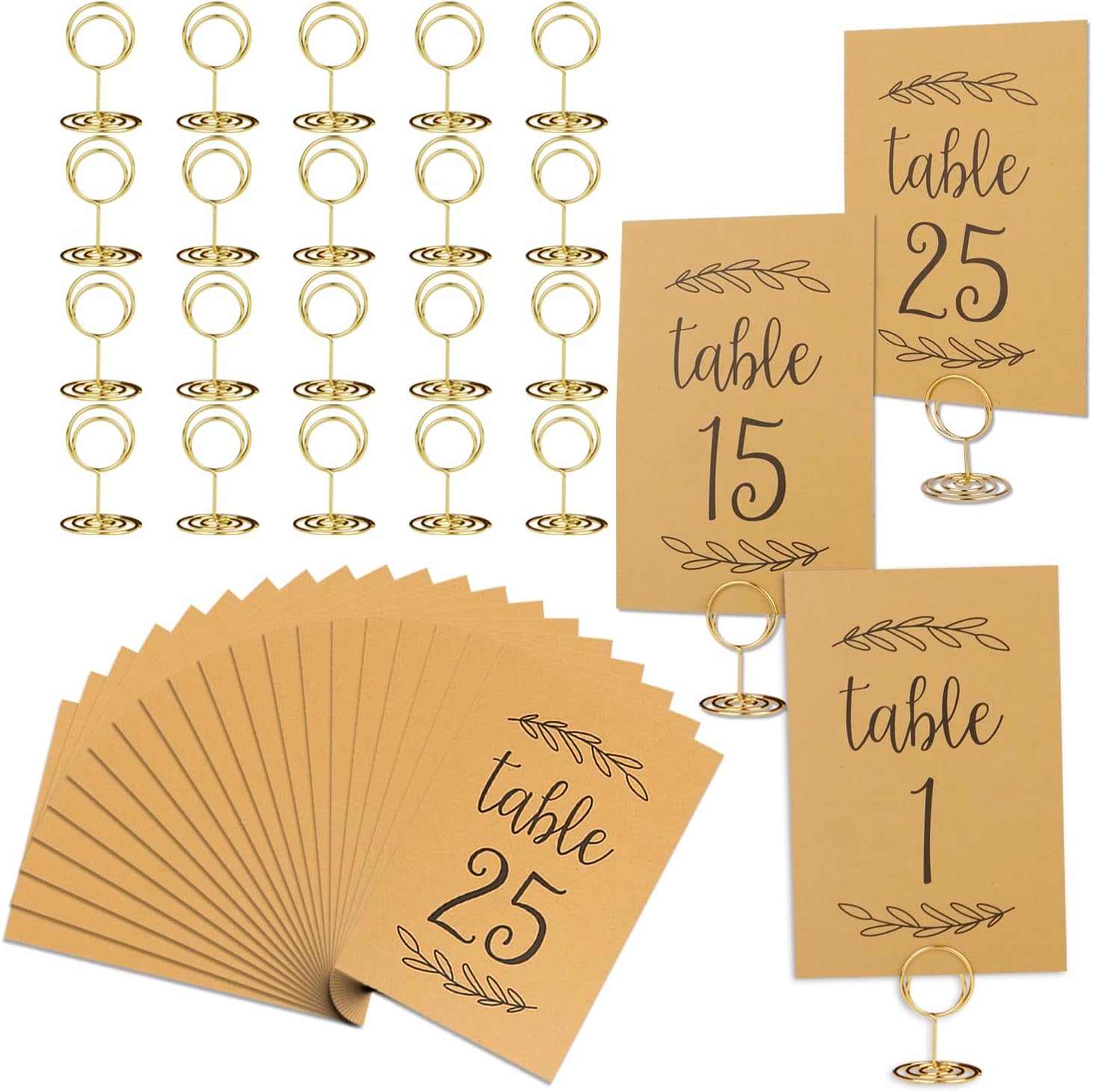 • Elegant Table Number Set: Includes 25 kraft table numbers 1-25, along with 25 gold table number holders, everything you need for a beautifully coordinated seating arrangement without needing additional holders.