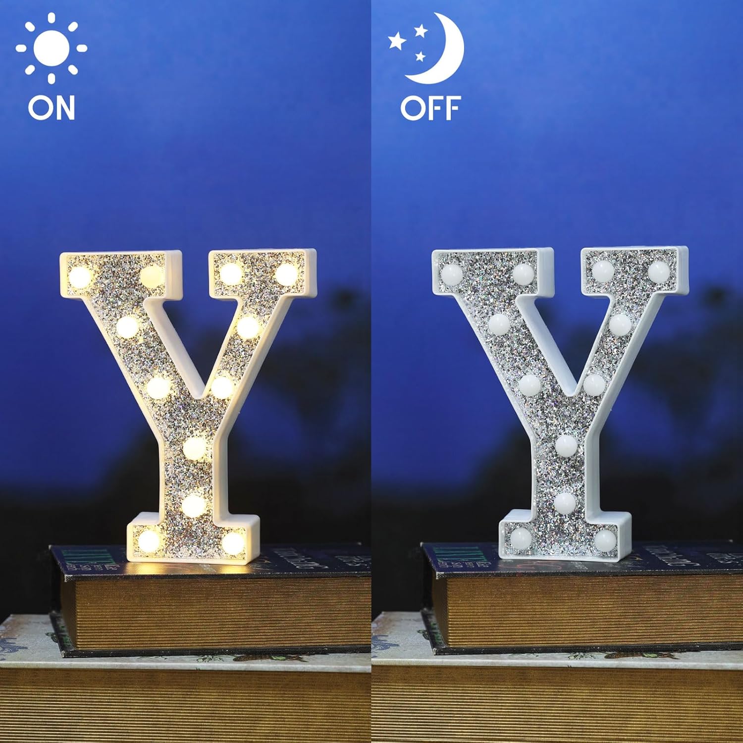 • ๐Ÿ’ก Elegant Glitter Light-Up Letters with Silver Diamond Finish: These LED marquee light up letters feature a stunning glitter effect combined with a sophisticated silver diamond surface. Including all 26 alphabet letters and 10 numbers, these light up letters bring sparkle and elegance to any space, making them the perfect light letters for party decor, especially as light up letters for table settings or wall accents.