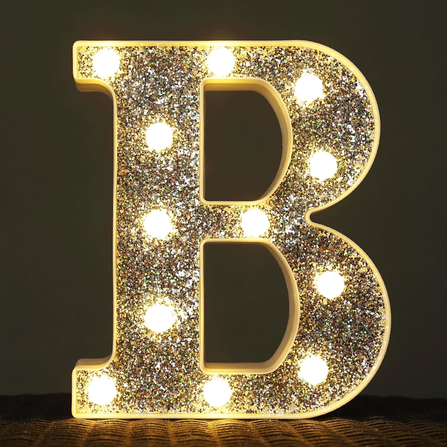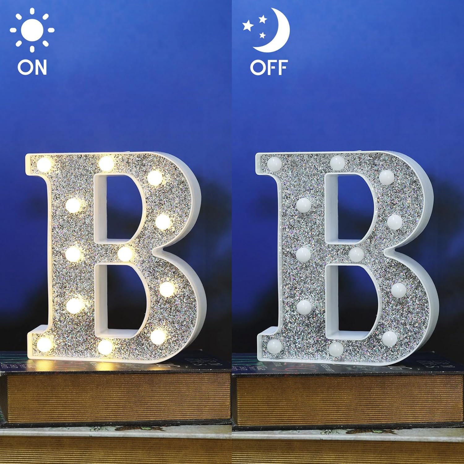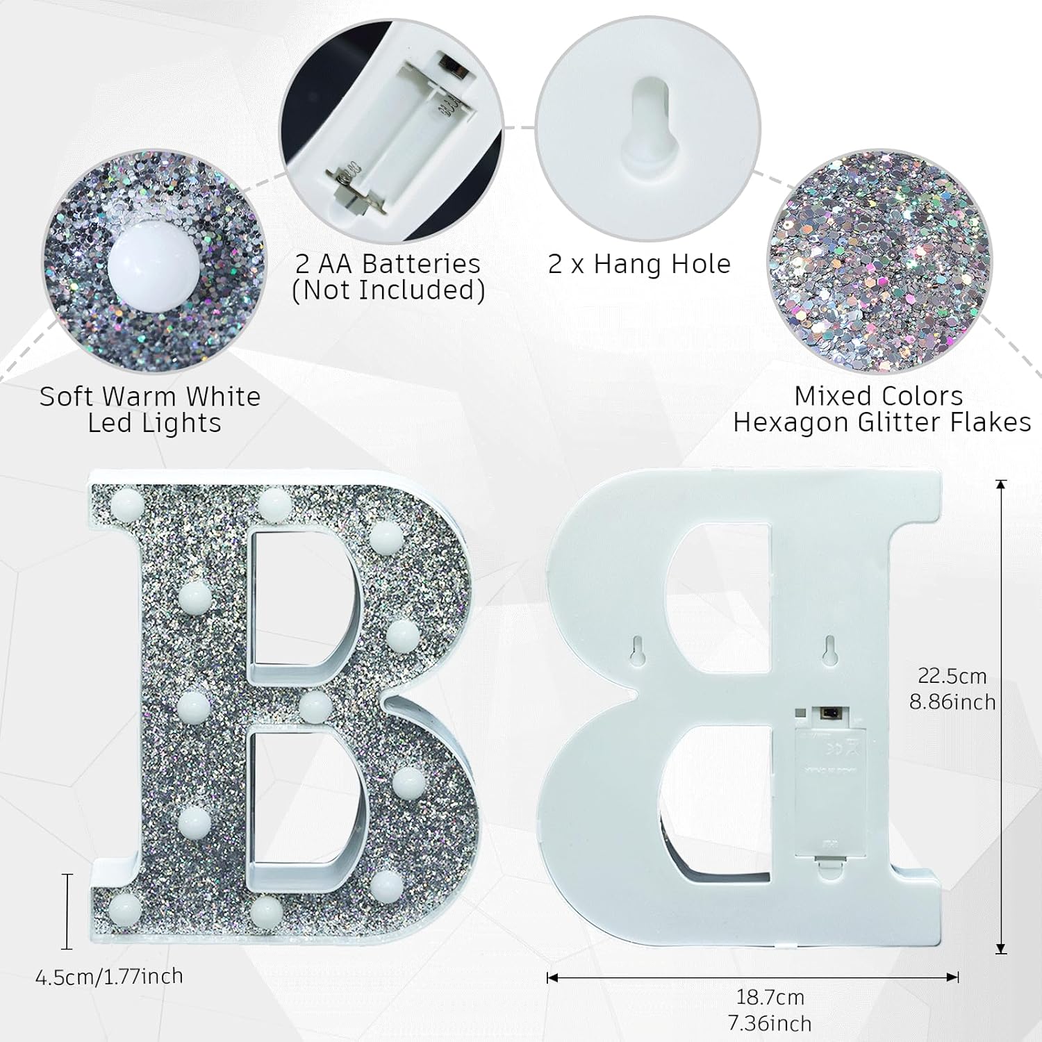 • 💡 Elegant Glitter Light-Up Letters with Silver Diamond Finish: These LED marquee light up letters feature a stunning glitter effect combined with a sophisticated silver diamond surface. Including all 26 alphabet letters and 10 numbers, these light up letters bring sparkle and elegance to any space, making them the perfect light letters for party decor, especially as light up letters for table settings or wall accents.