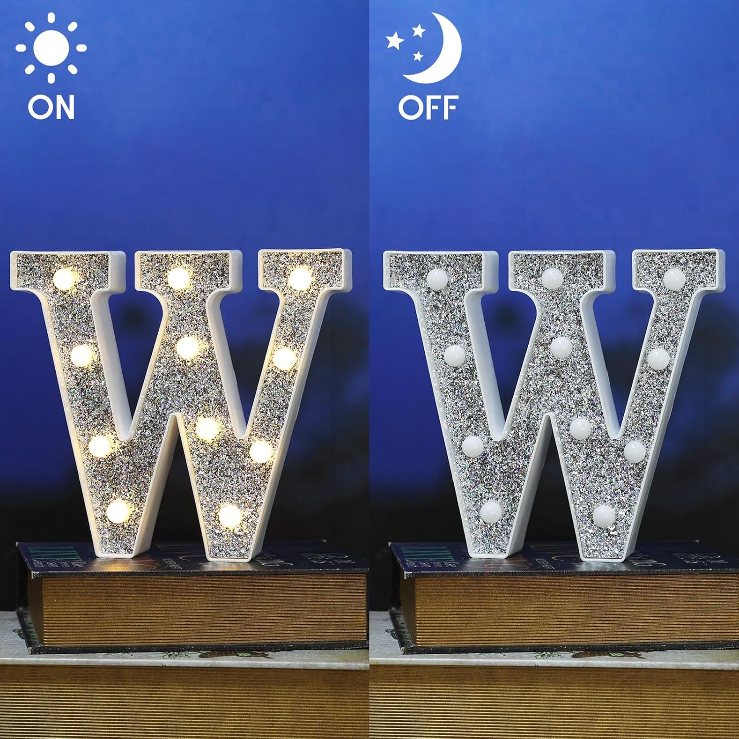 Light Up Letters - Marquee Decor, Glitter Alphabet & Number Signs for Prom, Events or Engagement Parties - Letter W