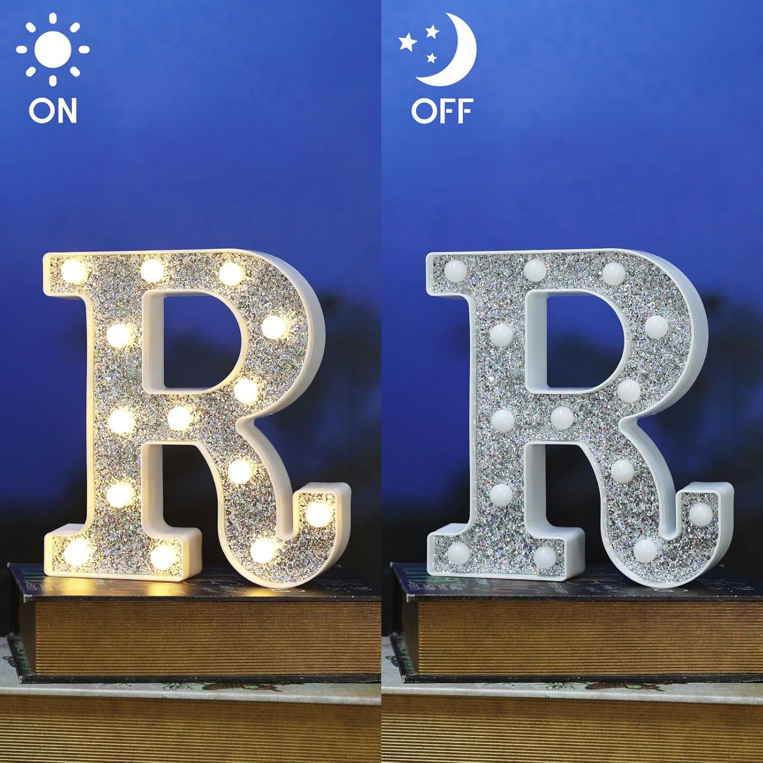 • πŸ’‘ Elegant Glitter Light-Up Letters with Silver Diamond Finish: These LED marquee light up letters feature a stunning glitter effect combined with a sophisticated silver diamond surface. Including all 26 alphabet letters and 10 numbers, these light up letters bring sparkle and elegance to any space, making them the perfect light letters for party decor, especially as light up letters for table settings or wall accents.