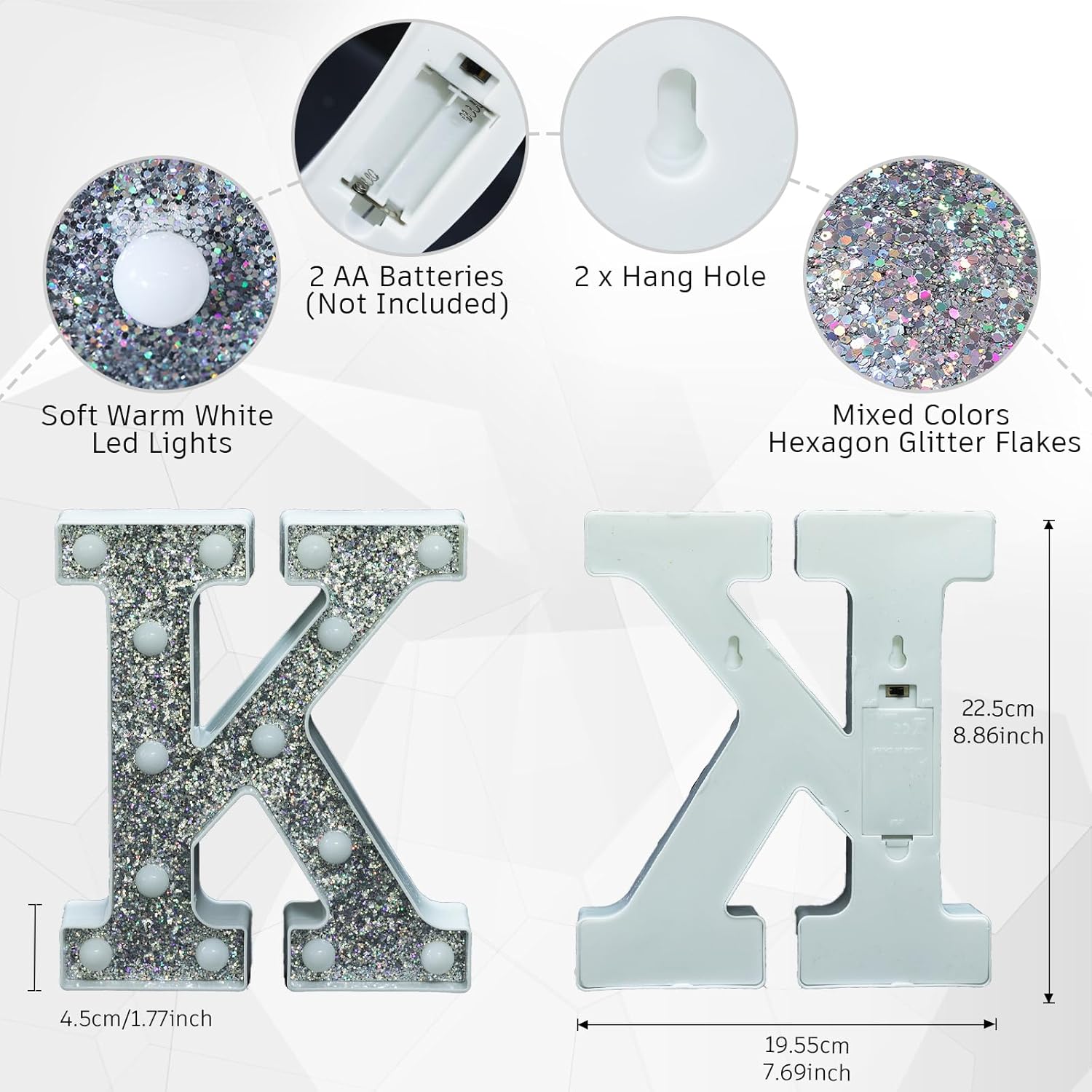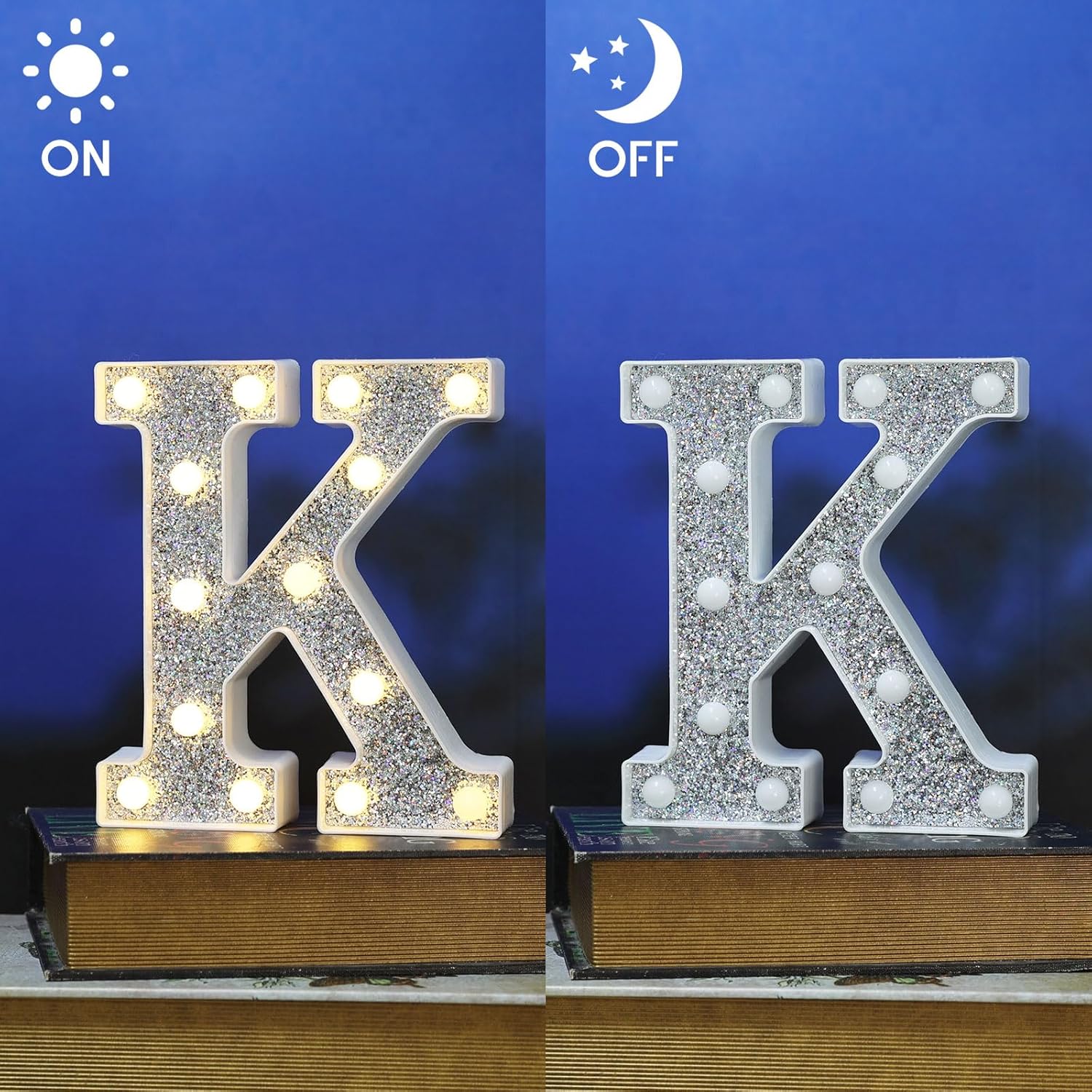 NW LIGHT Light Up Marquee Letter K for Table Decorations, Glitter Alphabet Signs for Prom, Events, or Engagement Party Decor