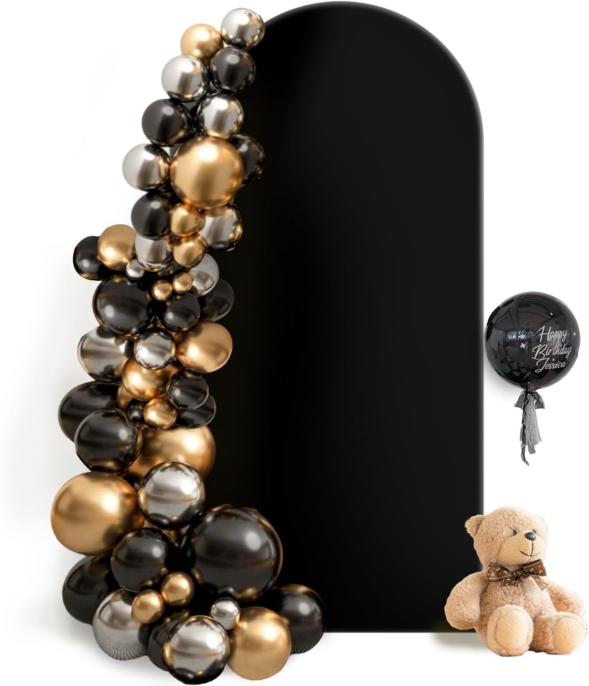 Hemmotop 6 ft Black Arch Cover (No Arch Backdrop Stand), 2-Sided Spandex Arch Covers Stretchy Backdrop, for Wedding, Baby Shower, Birthday Party Decoration