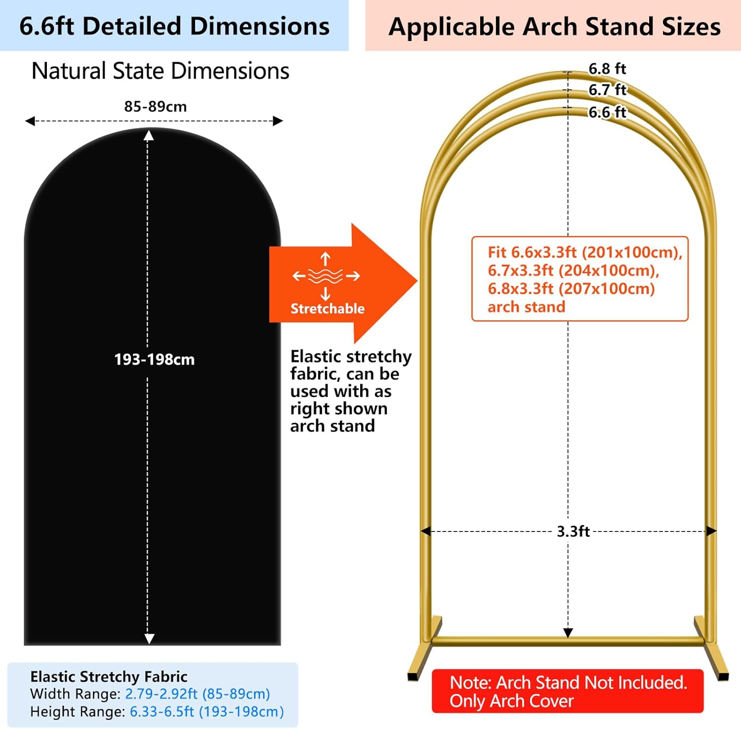 • Applicable Arch Stand Size: The arch cover has good elasticity, and the natural size range is 6.33-6.5 ft high and 2.79-2.92 ft wide. It can be used for arches with a height of 6.6 ft to 6.8 ft and a width of 3.3 ft. ⚠️ Note: Arch stand is not included